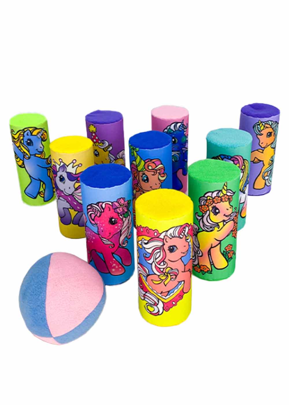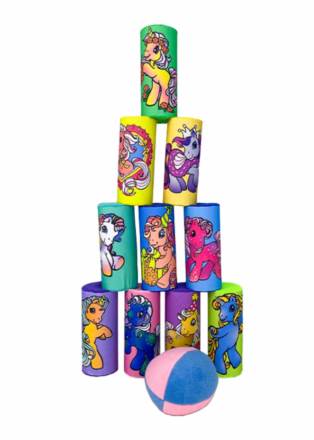 Реквизит Банки Единороги вдохновленные милыми образами единорогов. В комплекте 10 банок с изображениями единорогов, и также входит мягкий мячик. Удобный чехол с затяжками обеспечивает легкость хранения и переноски всех компонентов.