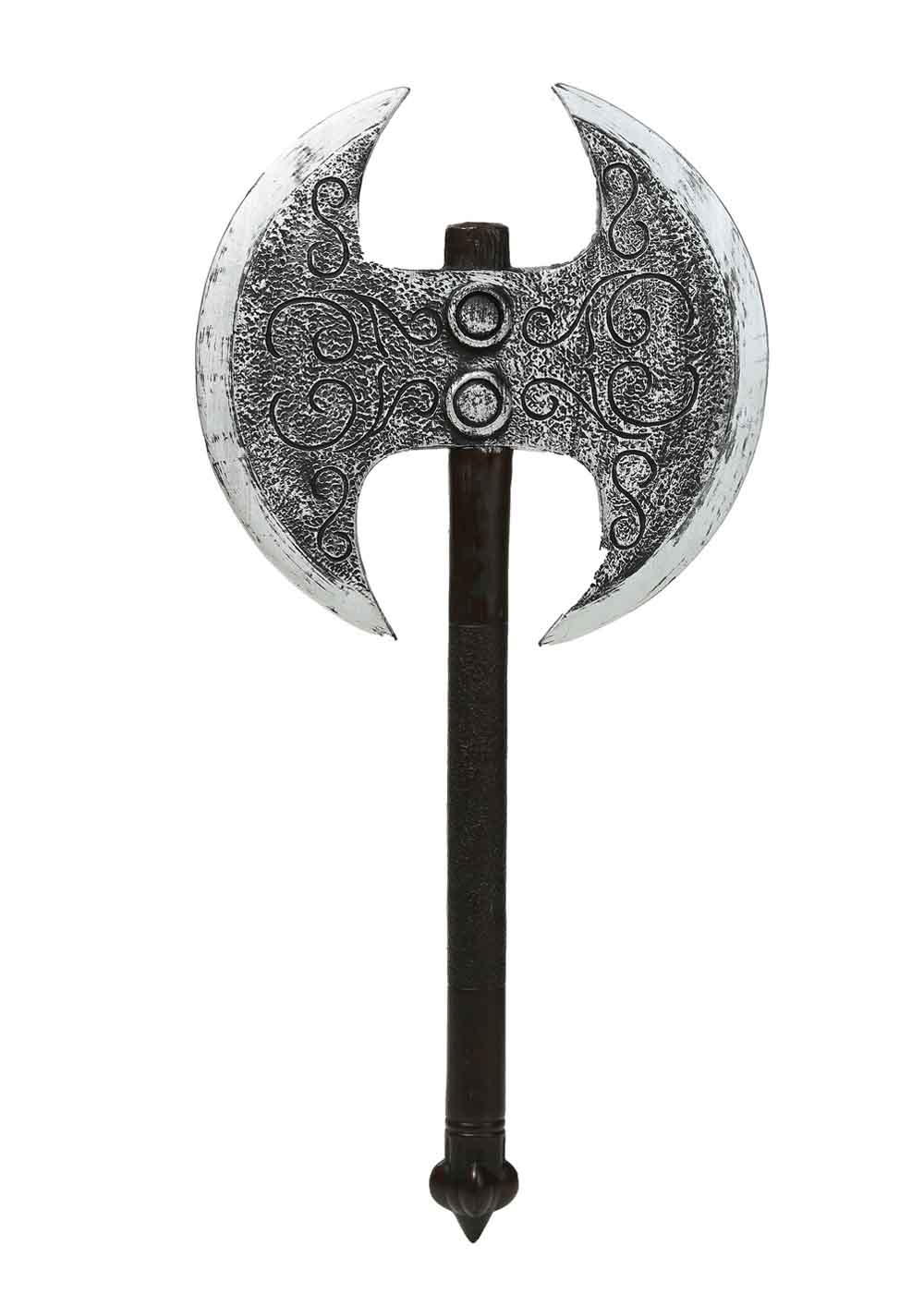 Боевой топор, это мощное и внушительное оружие, которое привнесет атмосферу древности и силы в ваш образ. Изготовленный из пластика, топор имеет длину 81 см и лезвие с закругленными краями диаметром 38 см, что придает ему величественный вид. Отлитый и окрашенный так, чтобы выглядеть как состаренное дерево и обработанная сталь, этот топор обладает реалистичным видом, который привлечет внимание и создаст неповторимую атмосферу. Узор на лезвии с реалистичными следами использования добавляет этому оружию еще больше характера и аутентичности.