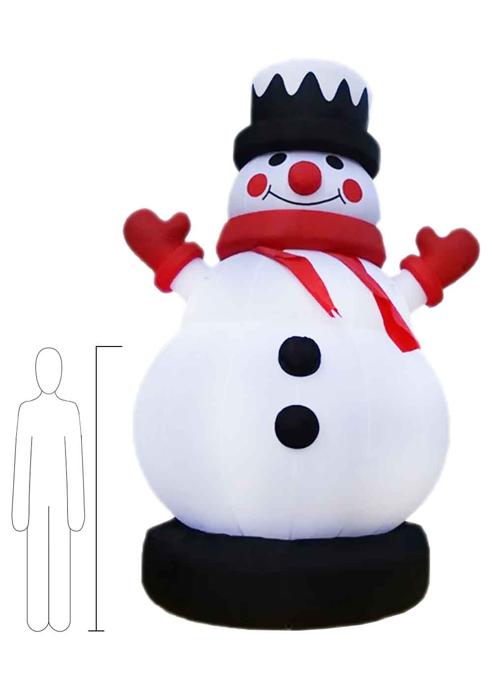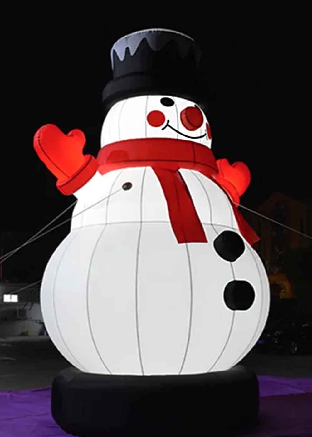 Большой надувной Снеговик — красивое и яркое рождественское украшение, которое придаст вашему двору или мероприятию атмосферу веселья и радости. Высота снеговика 4 метра. В комплект входят насос для быстрого надувания, прочные веревки для надежного крепления и мешок с песком для устойчивости. Создайте волшебство праздника с этим прекрасным снеговиком.