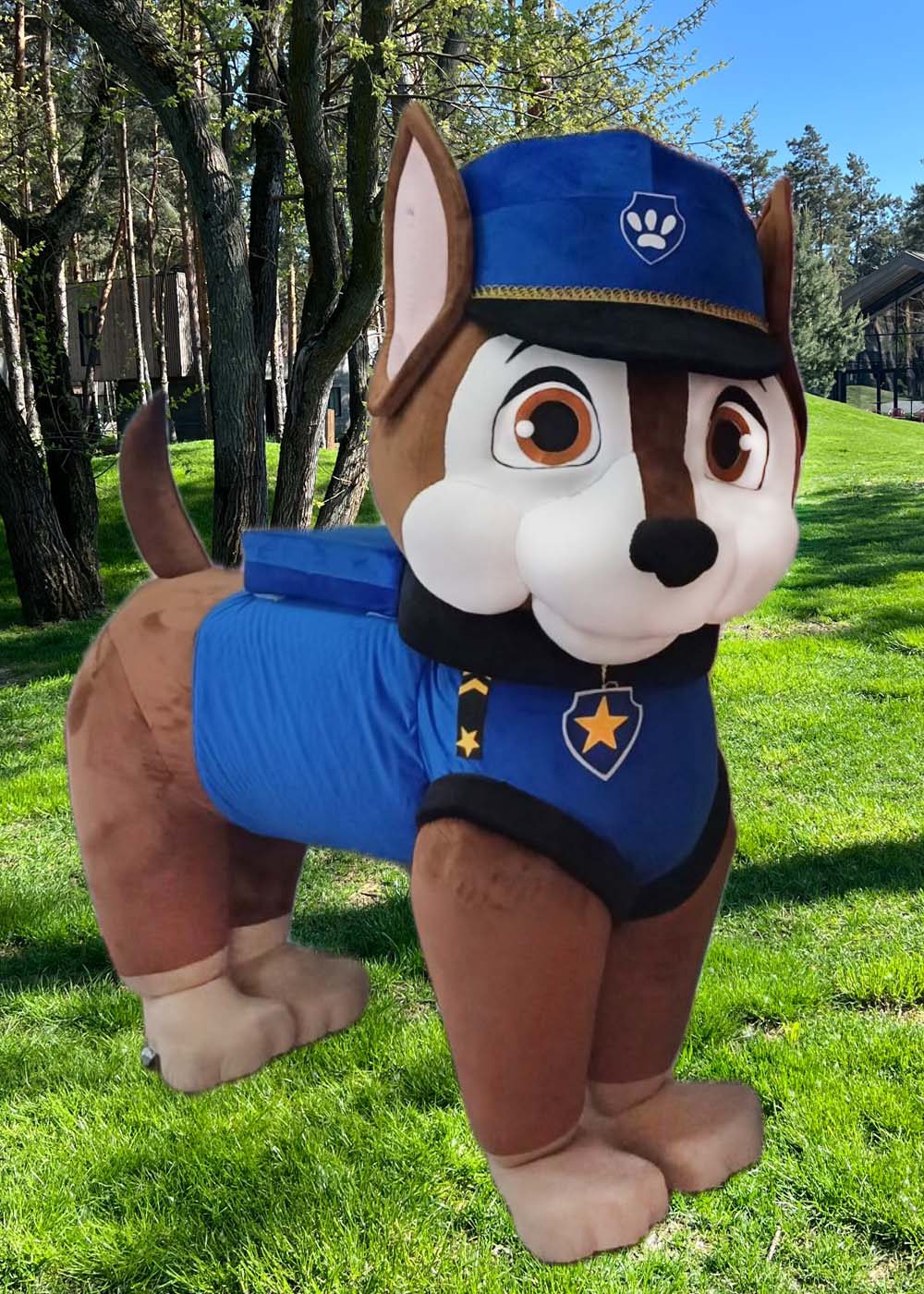 Ростовая каталка Чейз представляет собой захватывающий образ из мультсериала "Пес Патруль", который оживает благодаря умелому аниматору. В этом костюме аниматор находится в передней части, а задние ножки оснащены колесиками, обеспечивая легкое и грациозное передвижение. Изготовленный из безопасных материалов, он обеспечивает не только прочность и долговечность, но и комфорт в использовании. Костюм включает голову и туловище на поролоновом каркасе, придавая Чейзу реалистичный вид, а сетчатые глаза позволяют аниматору свободно взаимодействовать с окружающим миром, делая персонажа живым и выразительным.
