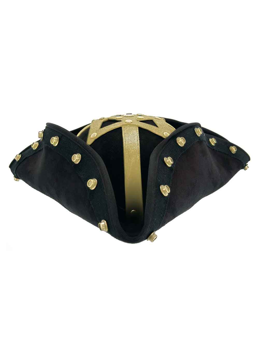 Шапка Черной Бороды,это великолепный аксессуар,который добавит загадочности и стиля к вашему образу. Бронзовые кнопки по краям с черной окантовкой добавляют дополнительную изысканность и стиль к этому аксессуару.