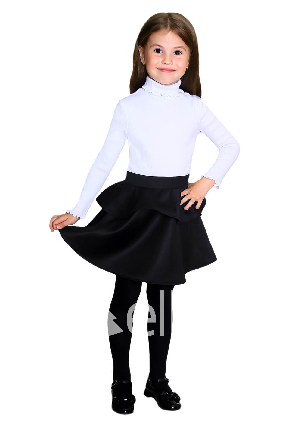 Выполнена юбка из высококачественных материалов - полиэстер, вискоза. Цвет юбки - черный. Юбка длинной до колена, что делает ее удобной. В данной модели присутствует деталь в виде широких рюшиков. Одев под юбку белую блузу выйдет нарядный образ. Данная юбка отличный вариант для школьной формы.