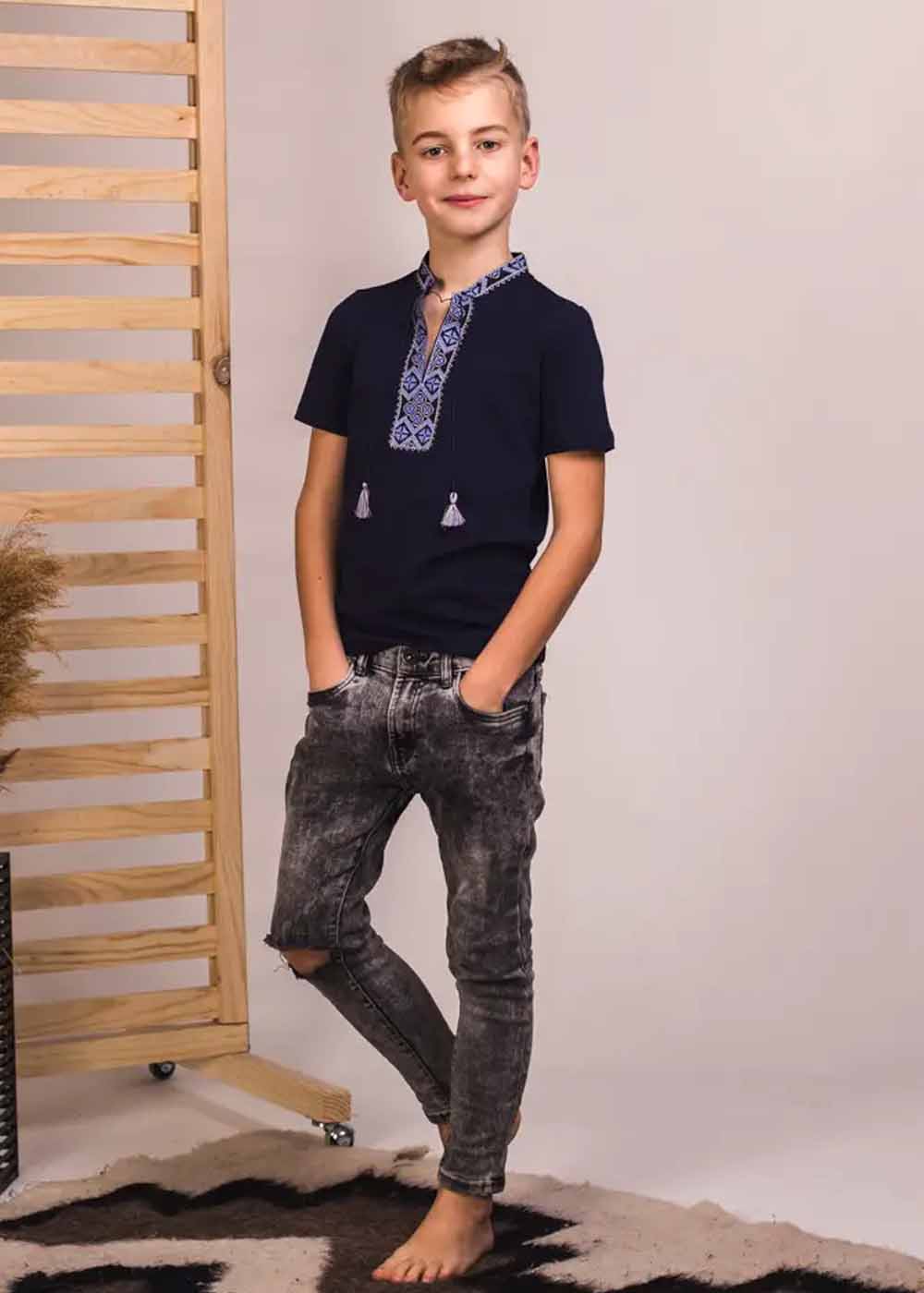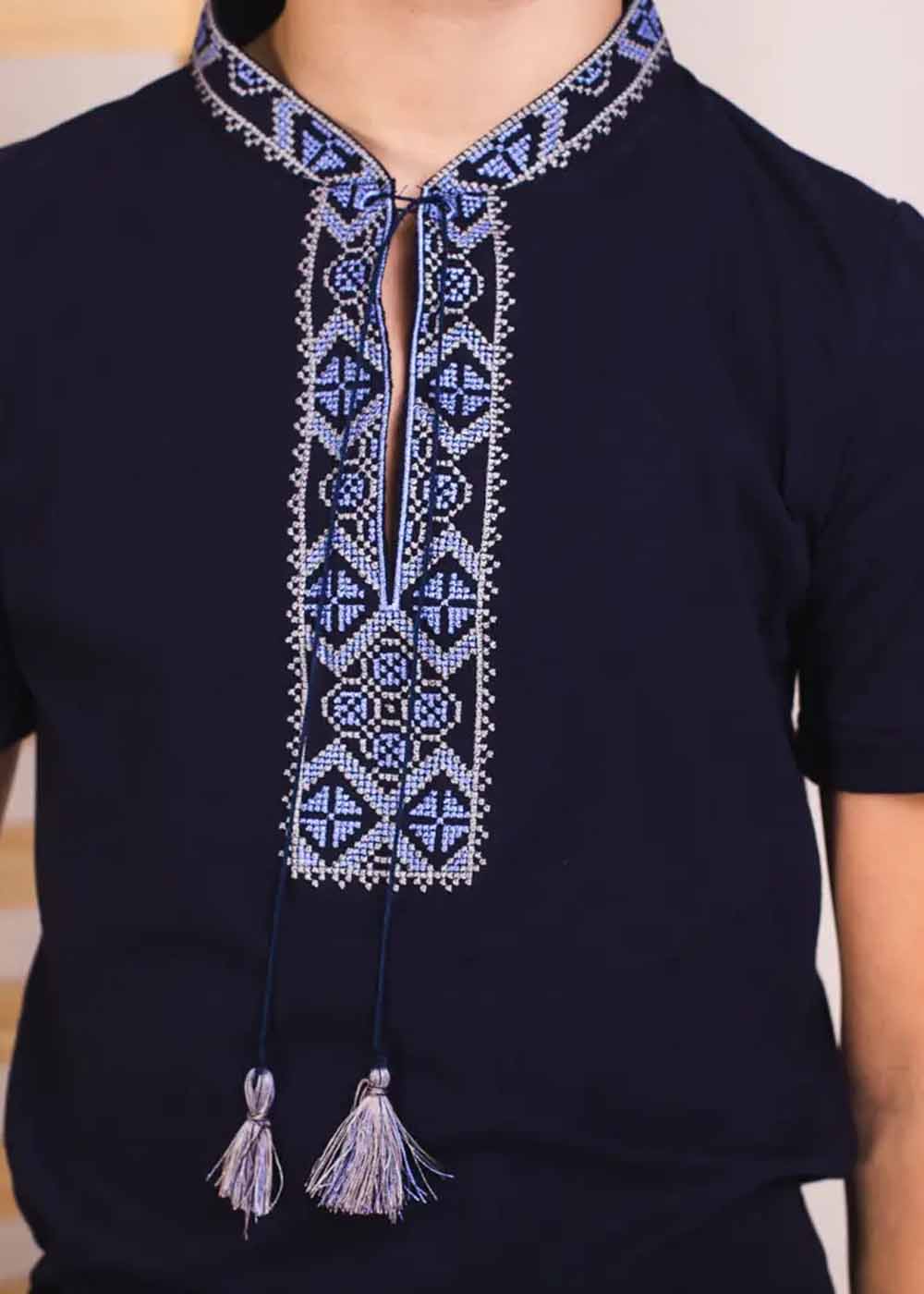 Детская вышитая футболка Мирослав темно-синего цвета с вышивкой спереди представляет собой элегантный выбор для маленьких модников. Орнамент на передней части футболки придает особый шарм и индивидуальность. Идеально подходит как для повседневного ношения, так и для особых случаев, добавляя яркие нотки стиля в гардероб ребенка.