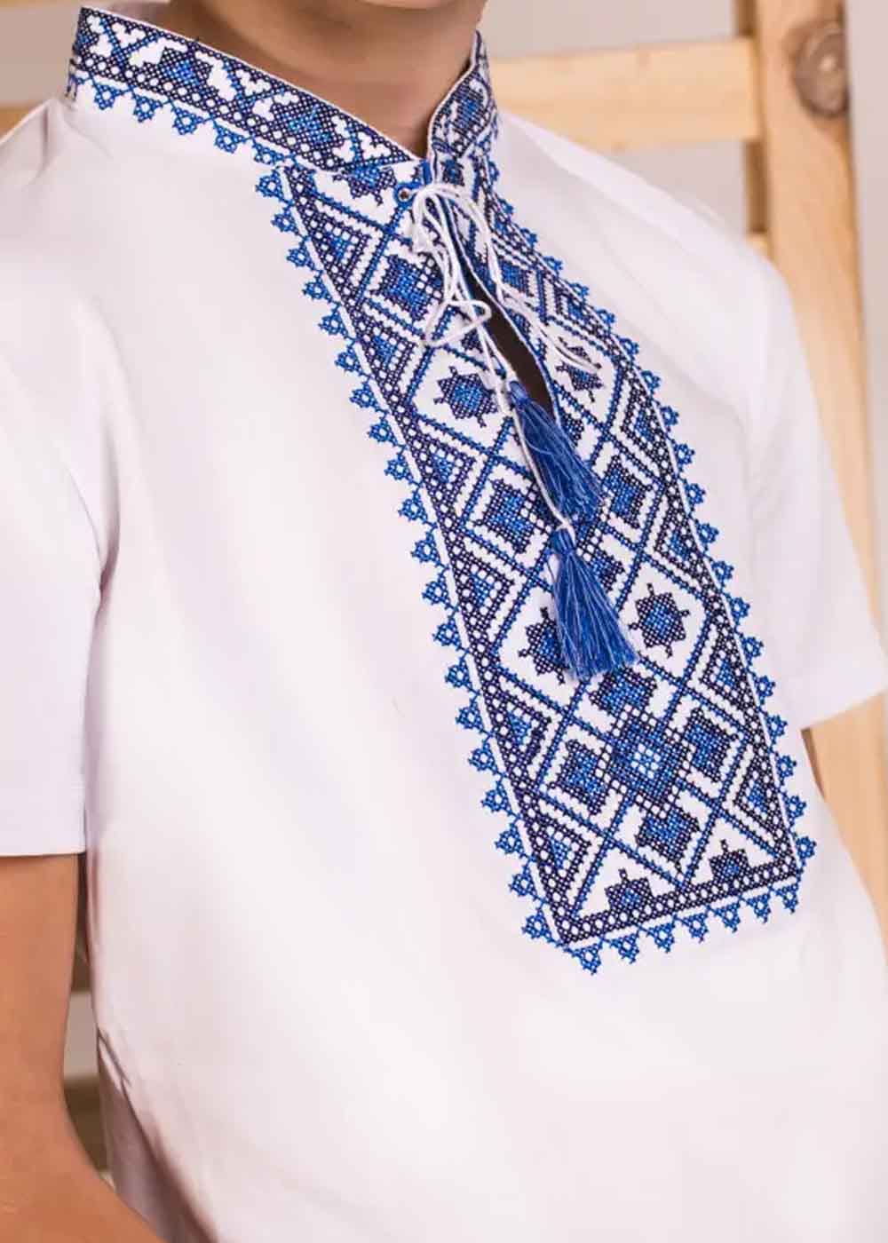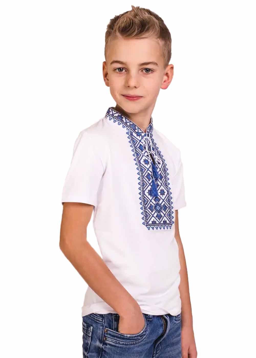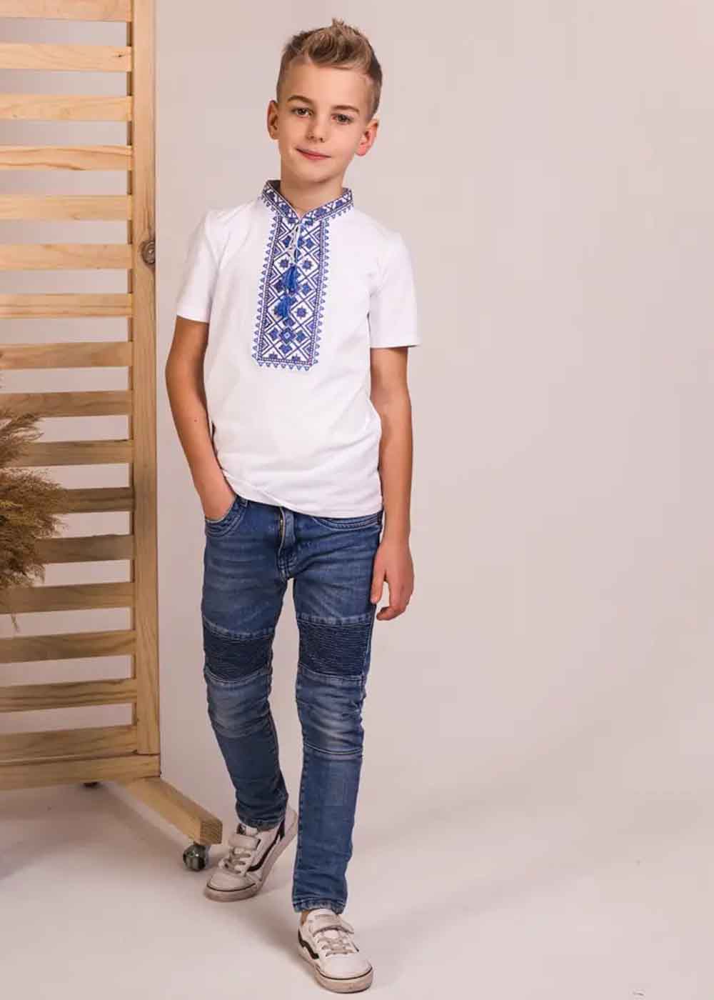 Детская вышитая футболка Зорян — белая футболка с изящной голубой вышивкой. Идеально подходит для маленьких модников, комбинируя комфорт и стиль в одном. Наряд станет прекрасным выбором для повседневного использования, добавляя нотку элегантности в детский гардероб.