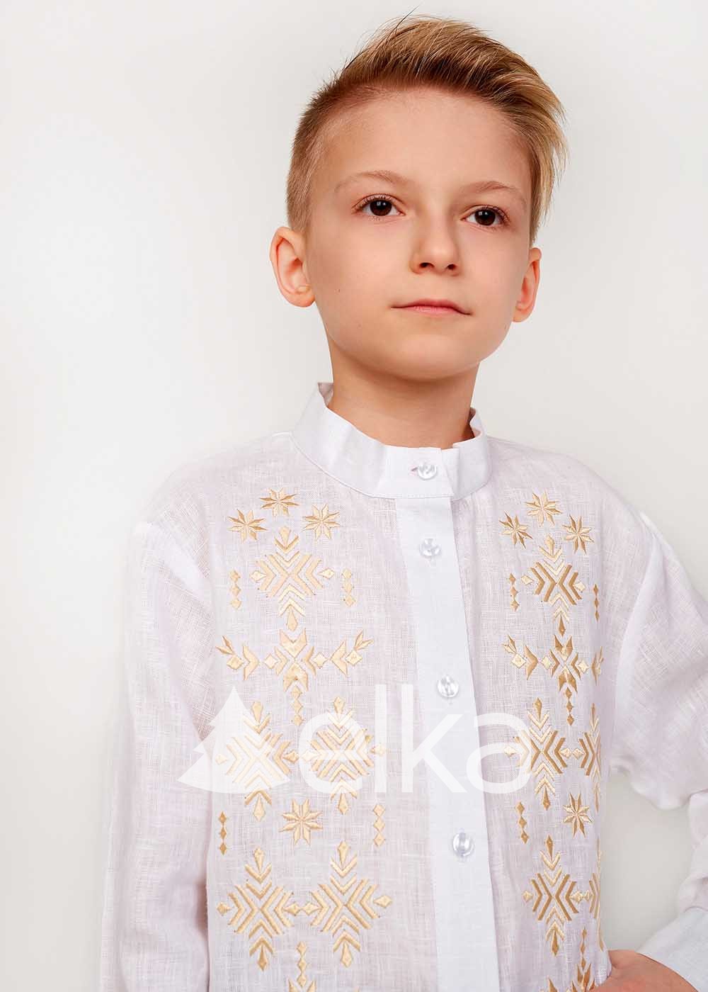 Детская вышиванка для мальчика Россыпь выполнена из натуральной льняной ткани.