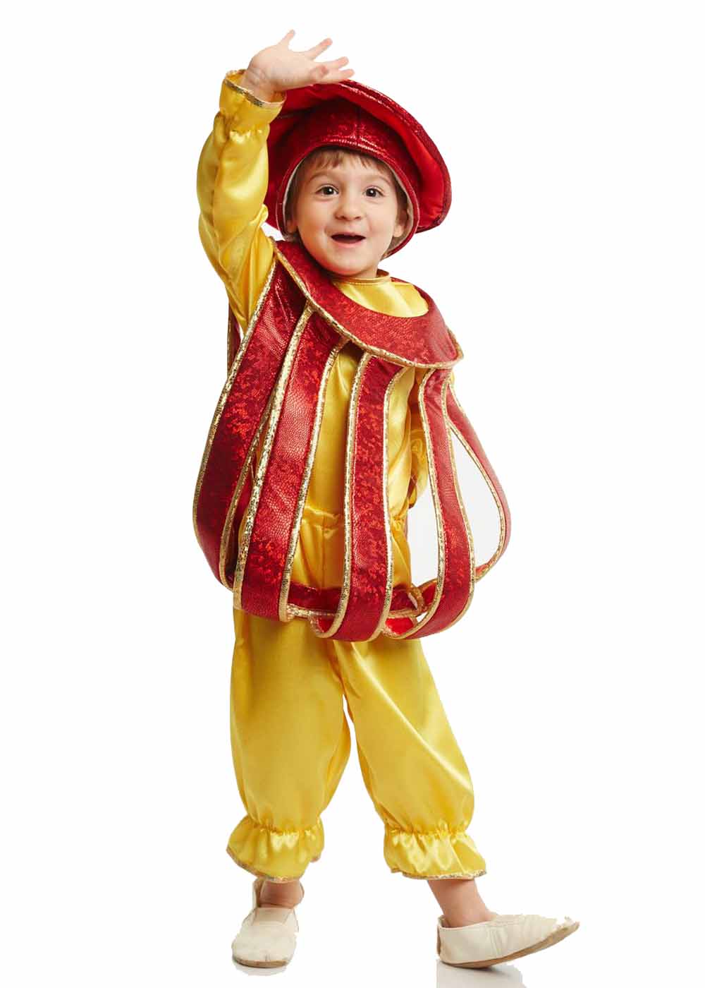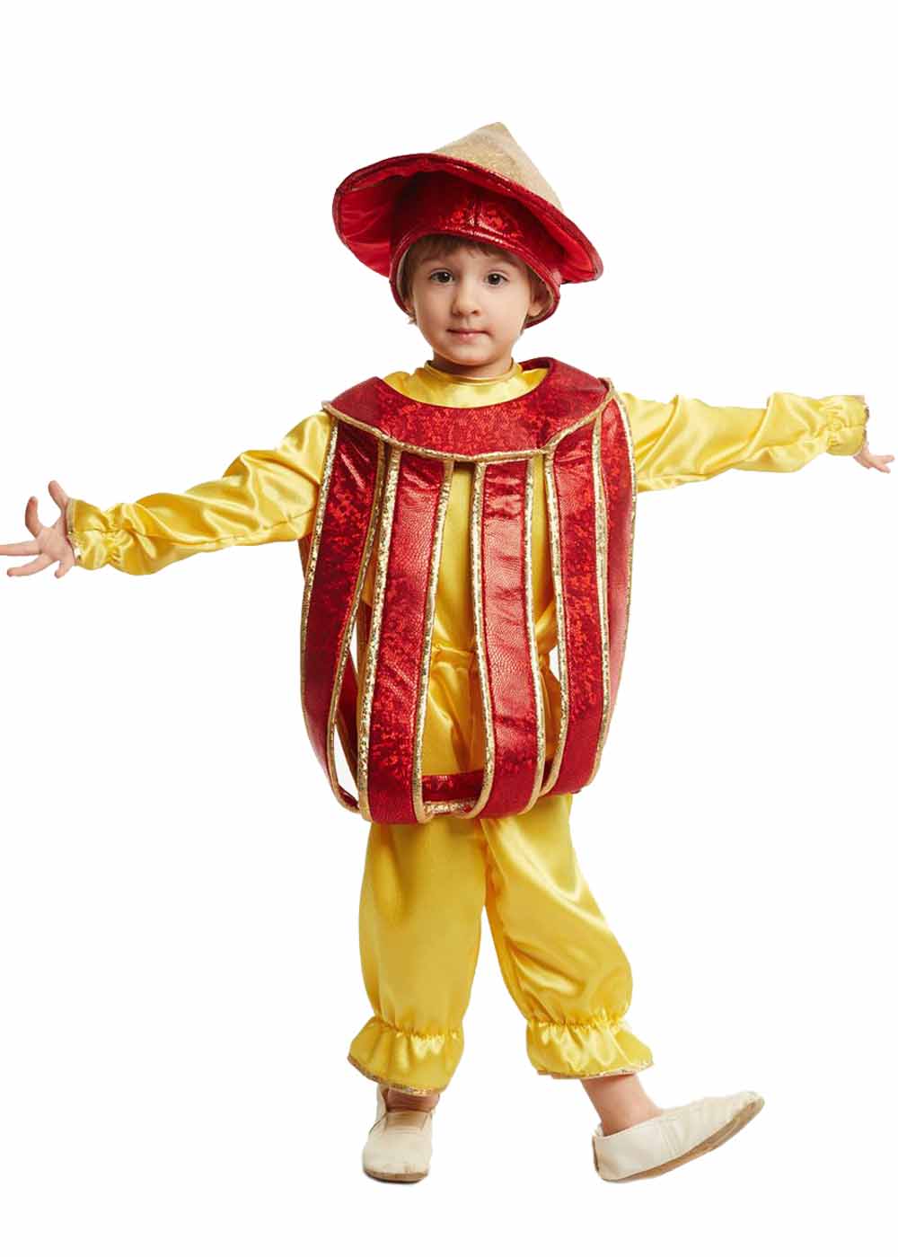 Детский костюм "Фонарик" превратит вашего ребенка в яркий и светящийся символ праздника. В комплект входят головной убор, кофта, штаны и накидка, создавая полный и эффектный образ фонарика. Головной убор и накидка украшены блестящими элементами, придающими костюму волшебство и уникальность. Этот костюм идеально подходит для праздничных мероприятий и тематических вечеринок. Выполнен из высококачественных материалов: креп-сатина, велюра и голограммы, что обеспечивает комфорт и долговечность.