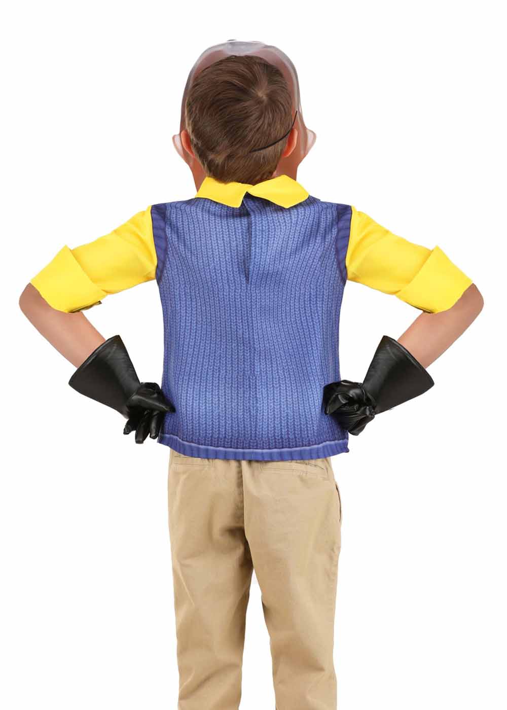 Детский костюм Привет сосед - вдохновленный популярной видеоигрой, создаст яркий и загадочный образ. Ярко-желтая рубашка с пуговицами в сочетании с синим жилетом с эффектными ромбовидными узорами привлекает внимание и выделяется. Жилет дополнен печатными деталями спереди, добавляя оригинальности и стиля. Застежка на спине рубашки обеспечивает легкость в одевании и комфорт в носке.