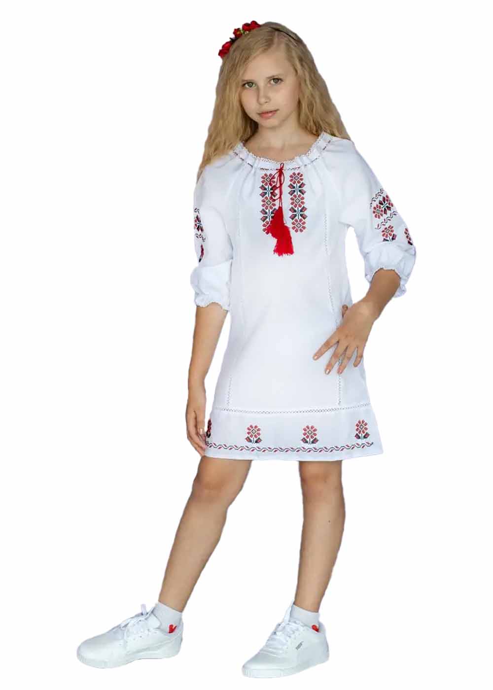 Детское вышитое платье Традиция — белое чудо с изысканной вышивкой на груди, на рукавах и внизу платья. Платье словно воплощение элегантности и наследия, где каждый узор рассказывает свою историю. Наряд не только добавит изящества в гардероб вашей маленькой леди, но и станет символом красоты и традиций