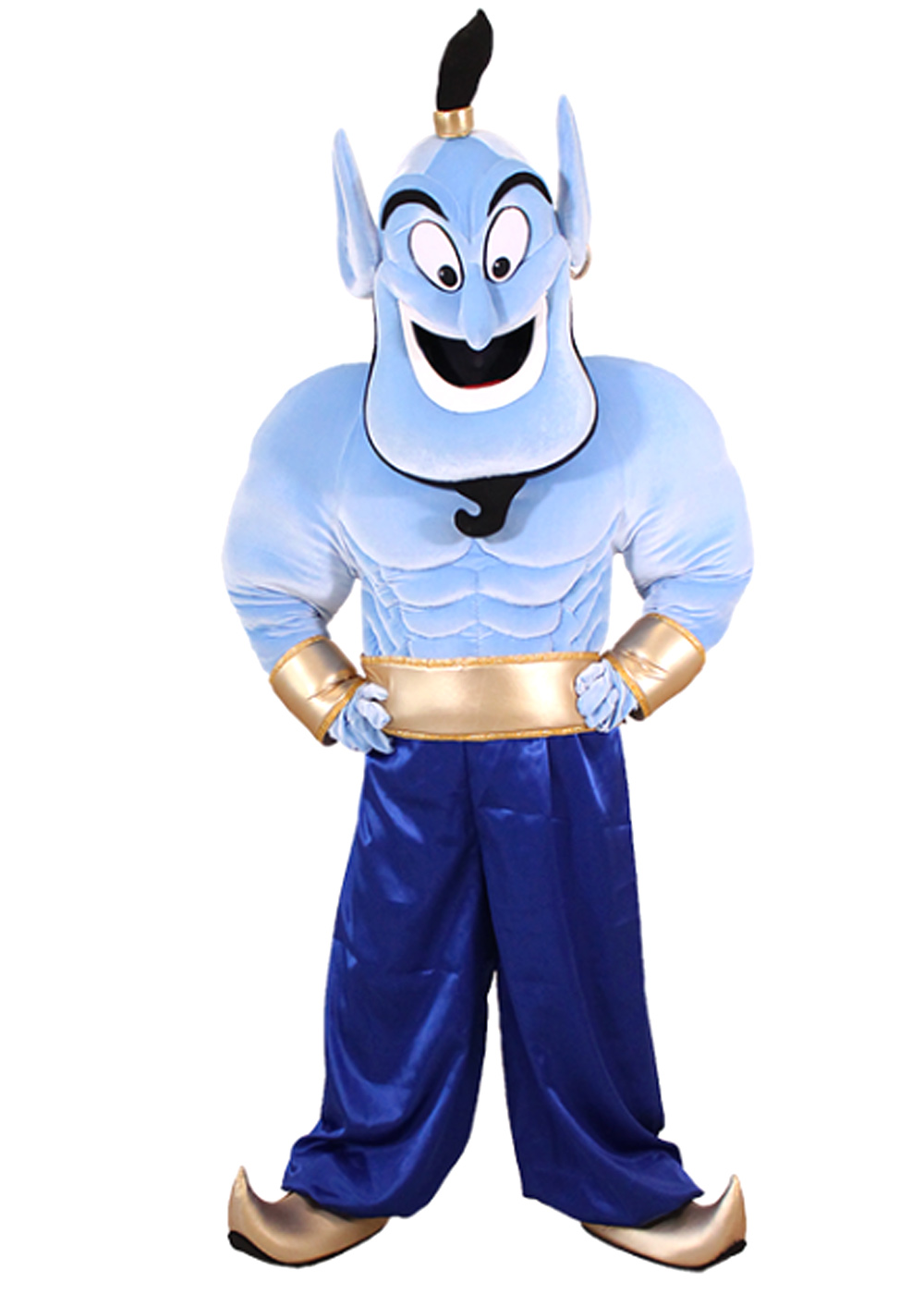 Ростовая кукла Джин вдохновлена персонажем из анимационного фильма "Аладин". Ее образ олицетворяет волшебство и юмор этого потрясающего мультфильма. Голова куклы имеет поролоновый каркас с изолоновыми вставками, обтянутыми бархатом, создающие уникальный и призрачный вид, характерный для персонажа Джина. Туловище куклы включает в себя объемный жилет с проработанной анатомической структурой, а также штаны из полиамидного материала, что придает костюму узнаваемый облик из мультфильма . Этот костюм позволит детям воплотить в жизнь захватывающие приключения и фантастические истории, погружаясь в волшебный мир