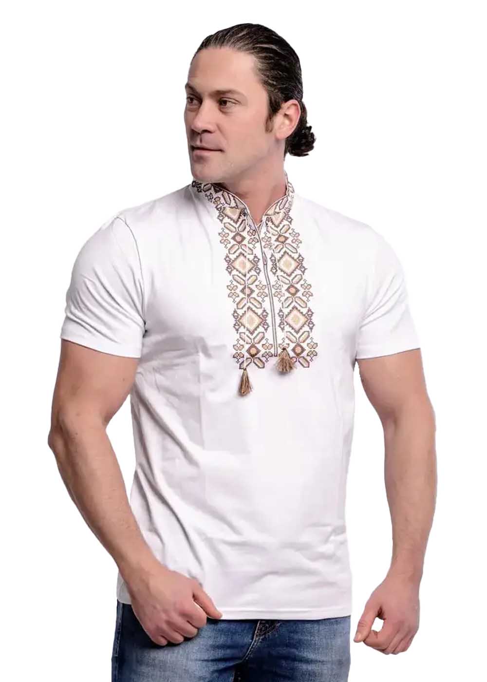Футболка вышиванка Гетьман коричневая продолжает тематику вышитой одежды. Мужская вышитая футболка выполнена из качественной ткани.