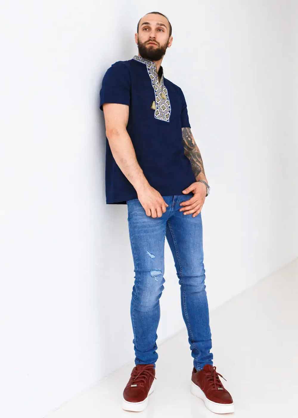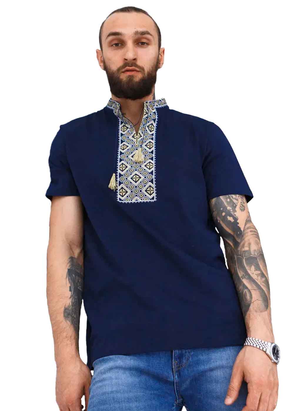 Футболка вышиванка Козацкая бежевая продолжает коллекцию вышитой одежды. Мужская вышитая футболка высокого качества.