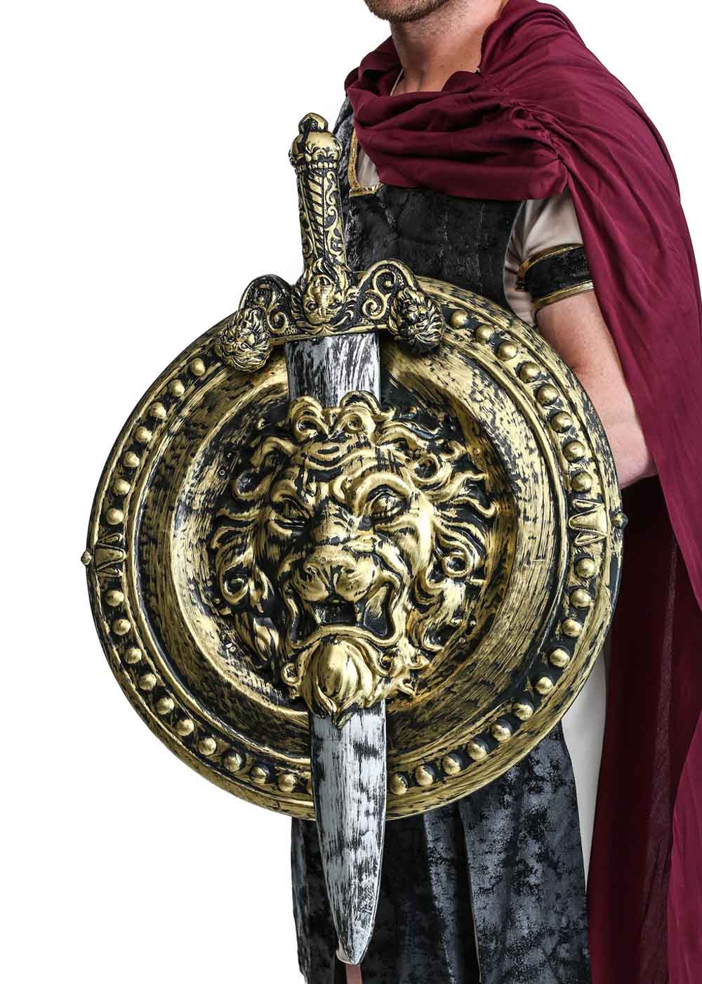 Гладиаторский щит - мощное и внушительное оружие, созданное для настоящих воинов, которые готовы сразиться на арене. Изготовленный из литого пластика, щит обладает прочной конструкцией и надежностью. Его компактные размеры делают его удобным в использовании, а резиновые ручки сзади обеспечивают комфортный и надежный хват во время сражения. Уникальная особенность этого щита заключается в том, что в его середину можно вставить литой пластиковый меч. Меч имеет длину 74 см и великолепно дополняет гладиаторский образ, придавая ему величие и мощь. Щит имеет широкие размеры 51х51 см, что обеспечивает отличную защиту и эффективное использование.