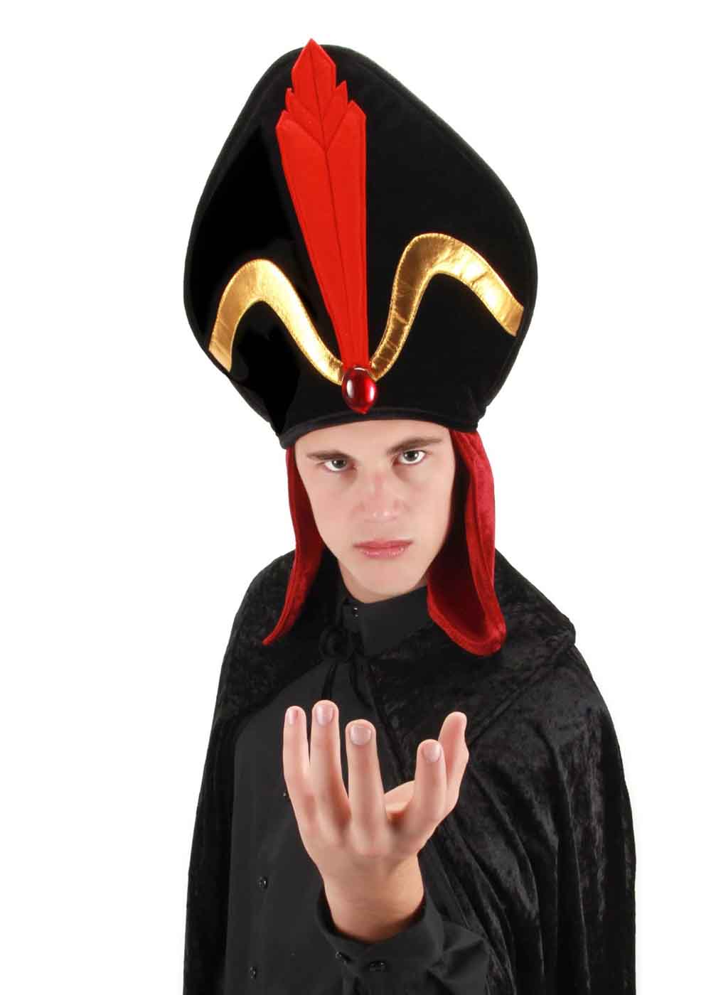 Головной убор Джафара, это величественный аксессуар, вдохновленный персонажем из сказки Аладдин. Изготовленный из высококачественного полиэстера, черный головной убор украшен красными и золотыми вставками, придающими ему роскошный вид. В центре убора расположена красная жемчужина, добавляющая шарма и изысканности. Задняя часть покрыта тканью темно-красного цвета, что создает эффектное сочетание и завершает образ. Внутренний регулируемый ремешок обеспечивает идеальную посадку головного убора, гарантируя максимальный комфорт во время ношения.