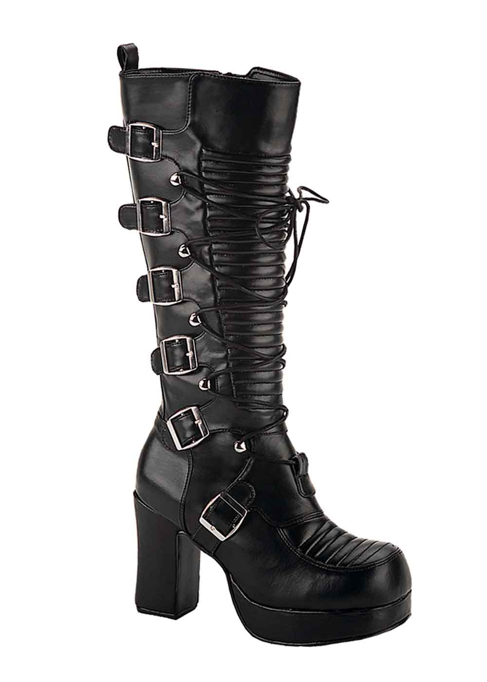 Готические сапоги — это воплощение загадочности и стиля. Их декоративные пряжки и шнурки, расположенные как спереди, так и сбоку, придают образу таинственность. Внутренняя боковая молния обеспечивает легкость надевания, а каблук высотой 10 см и подошва на платформе толщиной 3 см добавляют элегантности и выразительности.