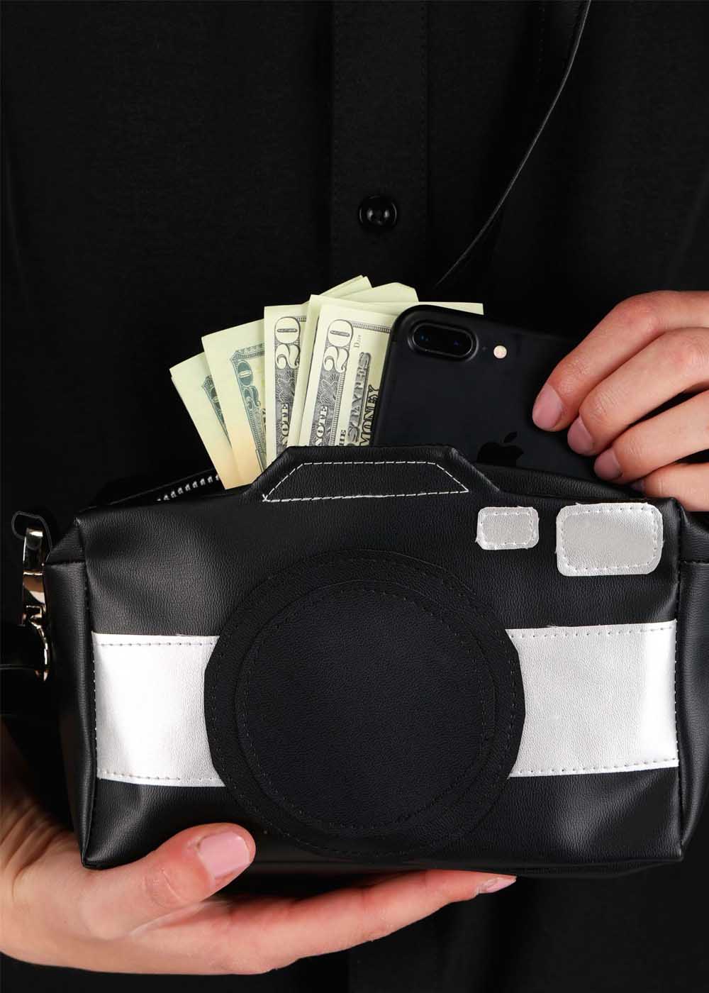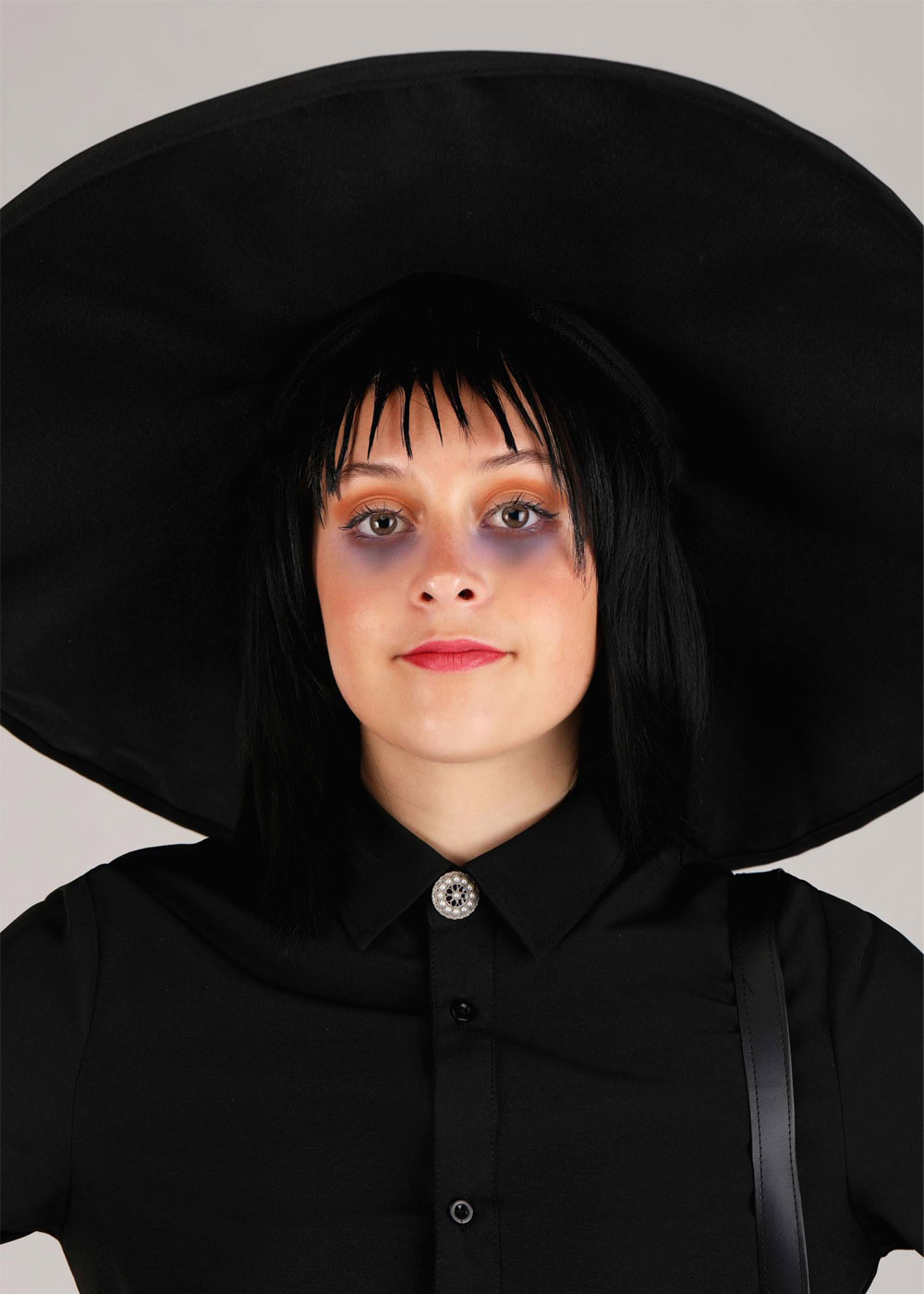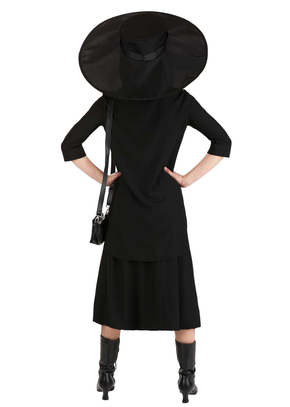 Готический костюм Лидии Дитц представляет собой элегантный наряд. Черная рубашка с воротником и пуговицами дополнена брошью, добавляющей загадочности. Рукава с манжетами создают классический вид, а юбка с эластичным поясом обеспечивает комфорт. Широкополая шляпа с проволокой для поддержания формы украшена лентой, придавая завершенность образу. Сумочка в виде камеры добавляет уникальный штрих к наряду, придавая винтажный и оригинальный вид.