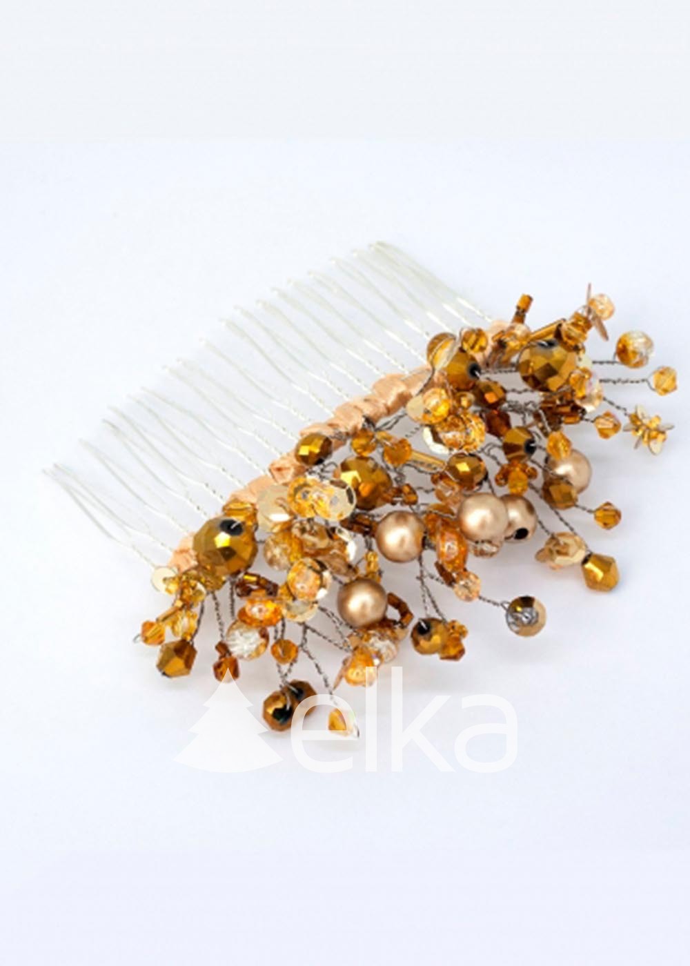 Гребень золотого цвета выполнен из высококачественных материалов: бусин, бисера, хрусталя, пайеток, атласных лент и металлической основы. Женский гребешок на голову подойдёт как для праздника, так и для повседневной жизни, украсит любую причёску и поднимет настроение.