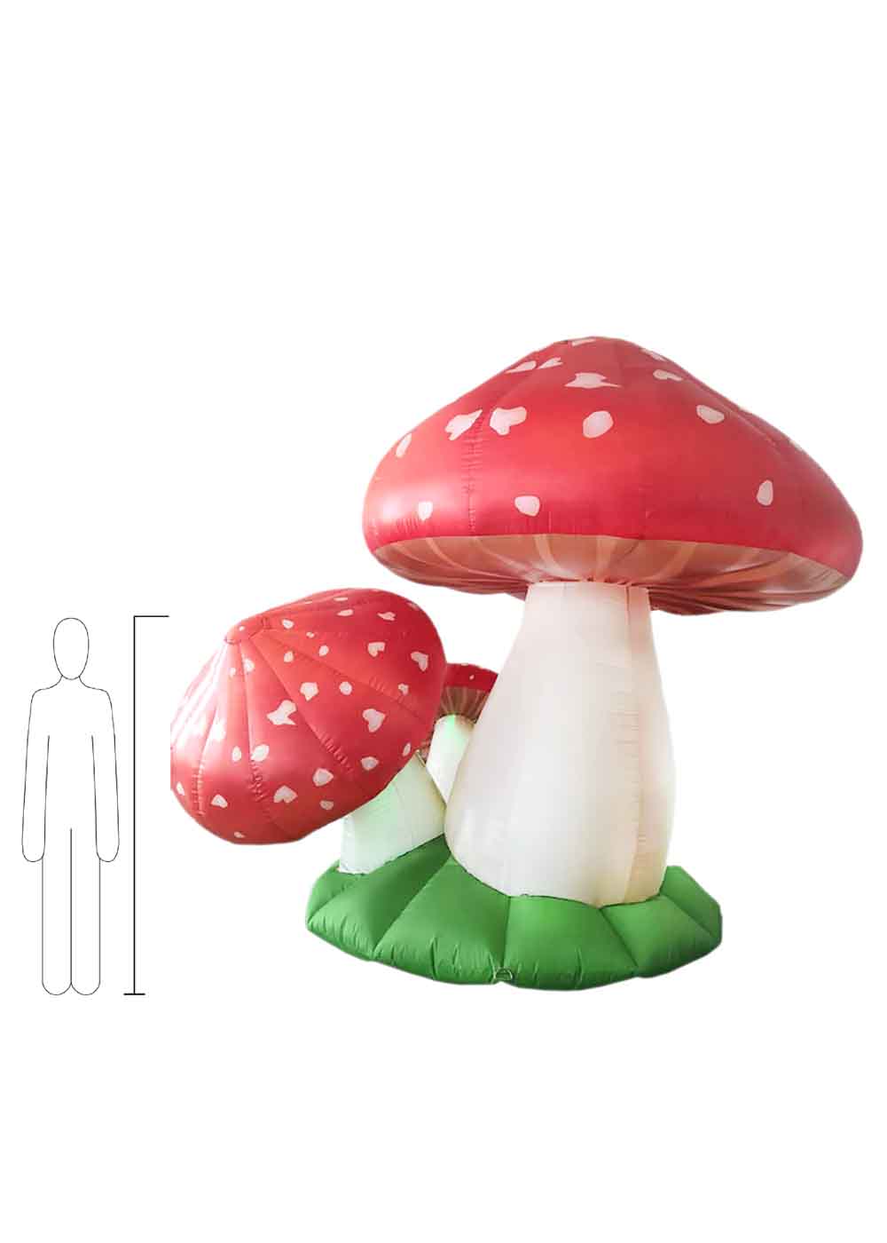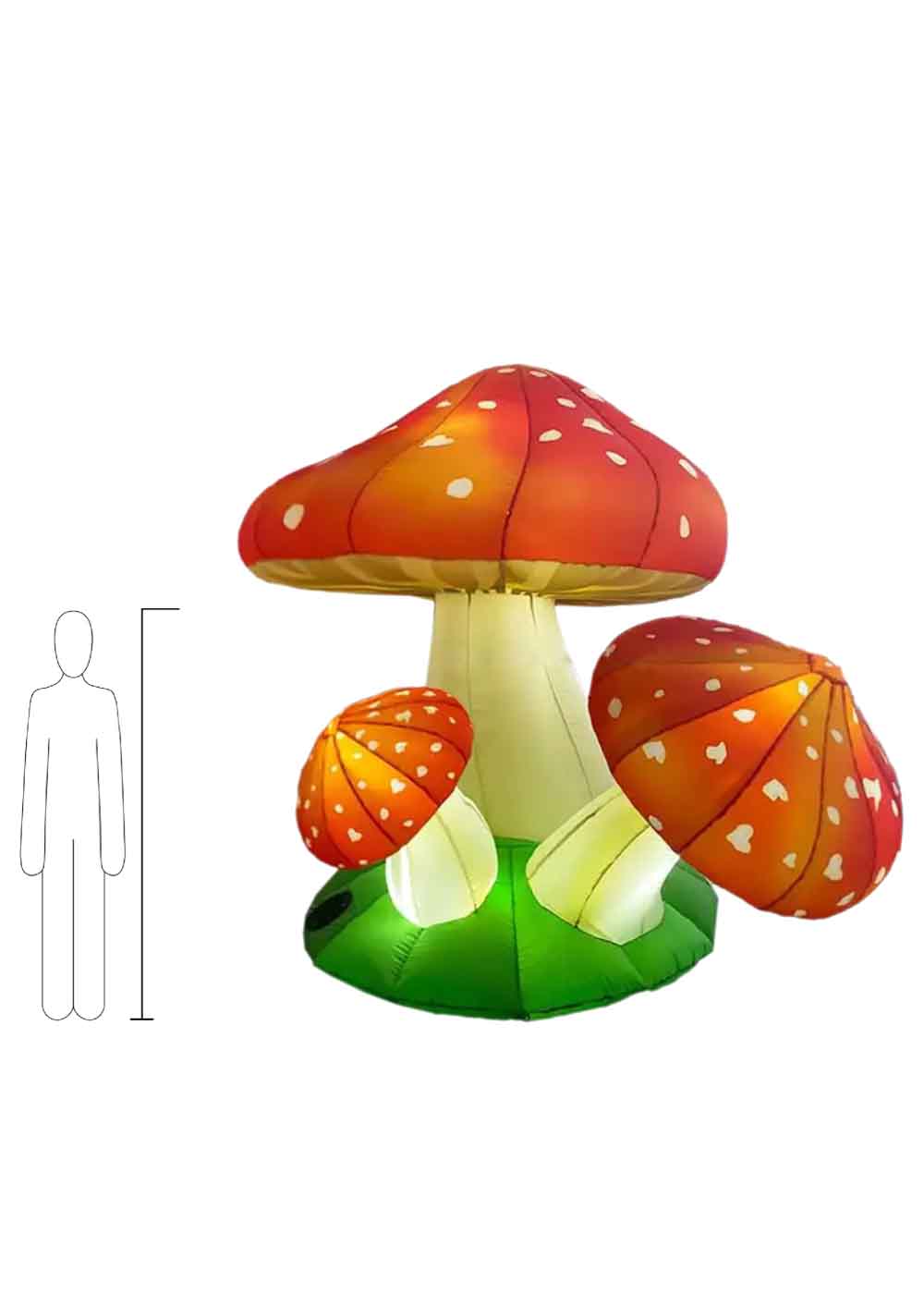 Грибница надувная декорация представляет собой забавное и креативное украшение для мероприятия. Высота декорации 2,5 метра. Гигантский надувной мультяшный гриб, освещенный белым светодиодным светом, придает атмосферу игривости и веселья. Комплектация включает в себя насос для быстрого надувания, прочные веревки для устойчивой фиксации и упаковочный мешок для удобной транспортировки и хранения.