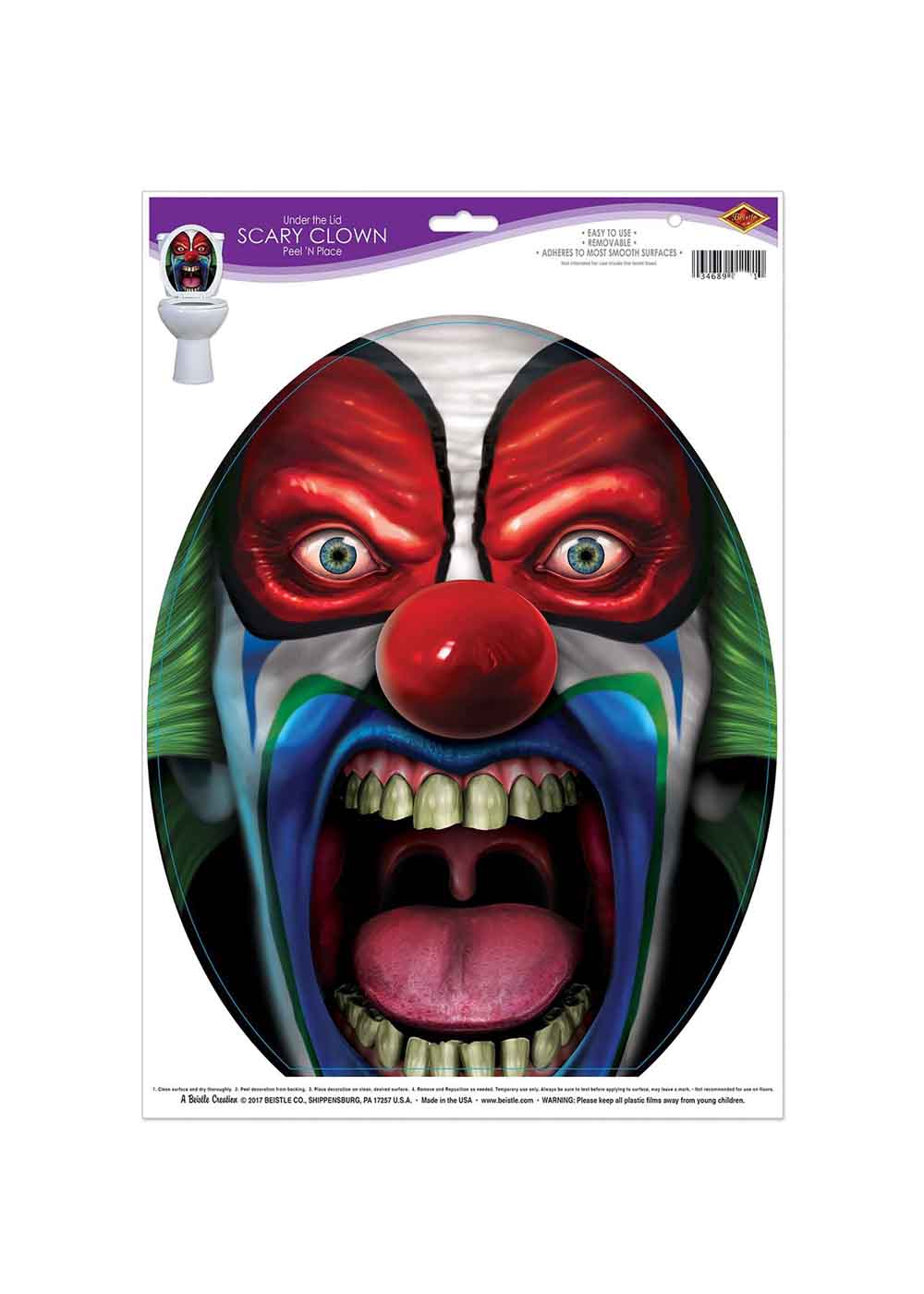 Клоун наклейка на туалет представляет собой виниловую наклейку с печатным изображением сердитого лица клоуна. Наклейка добавит эксцентричности и юмора в вашу ванную комнату. С легкостью прикрепляется к любой гладкой поверхности и легко удаляется без оставления следов.