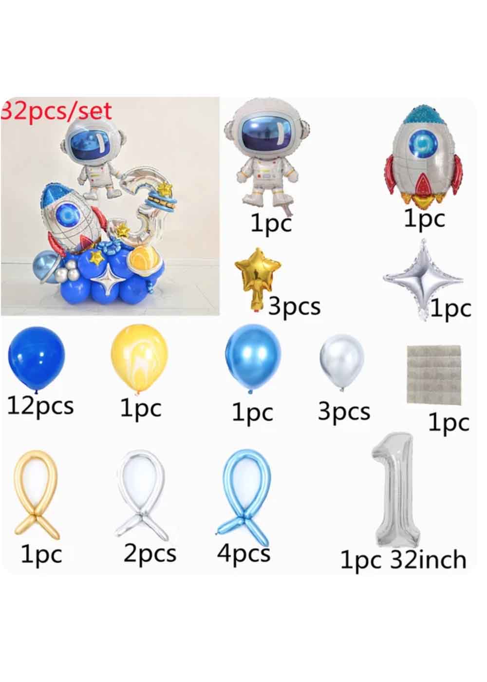 Космос набор шаров включает в себя 32 ярких и красочных элемента, которые создадут незабываемую атмосферу праздника. В набор входят фольгированные шары, выполненные в виде цифр от 0 до 9, что позволяет собрать любую комбинацию чисел для вашего особого случая. Пусть ваша вечеринка в стиле Космос станет незабываемым событием с замечательным набором воздушных шаров.