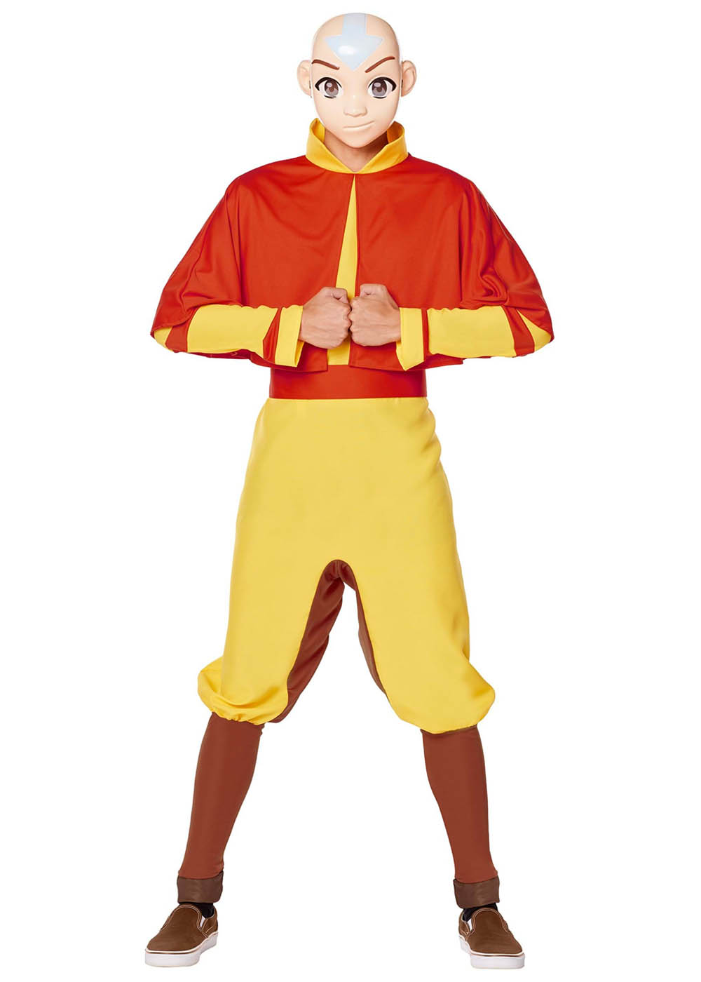 Превратитесь в великого Аанга из мира 'Аватар' с этим потрясающим костюмом! Костюм включает в себя комбинезон с тайной молнией на спине, с манжетами из трикотажа на ногах и плащом, пришитым к вырезу комбинезона. Ремень закрывается на застежку-липучку на спине. Литая пластиковая маска имеет эластичную ленту для крепления вокруг головы, а сетчатые отверстия для глаз обеспечивают обзор, сохраняя при этом реалистичный образ.
