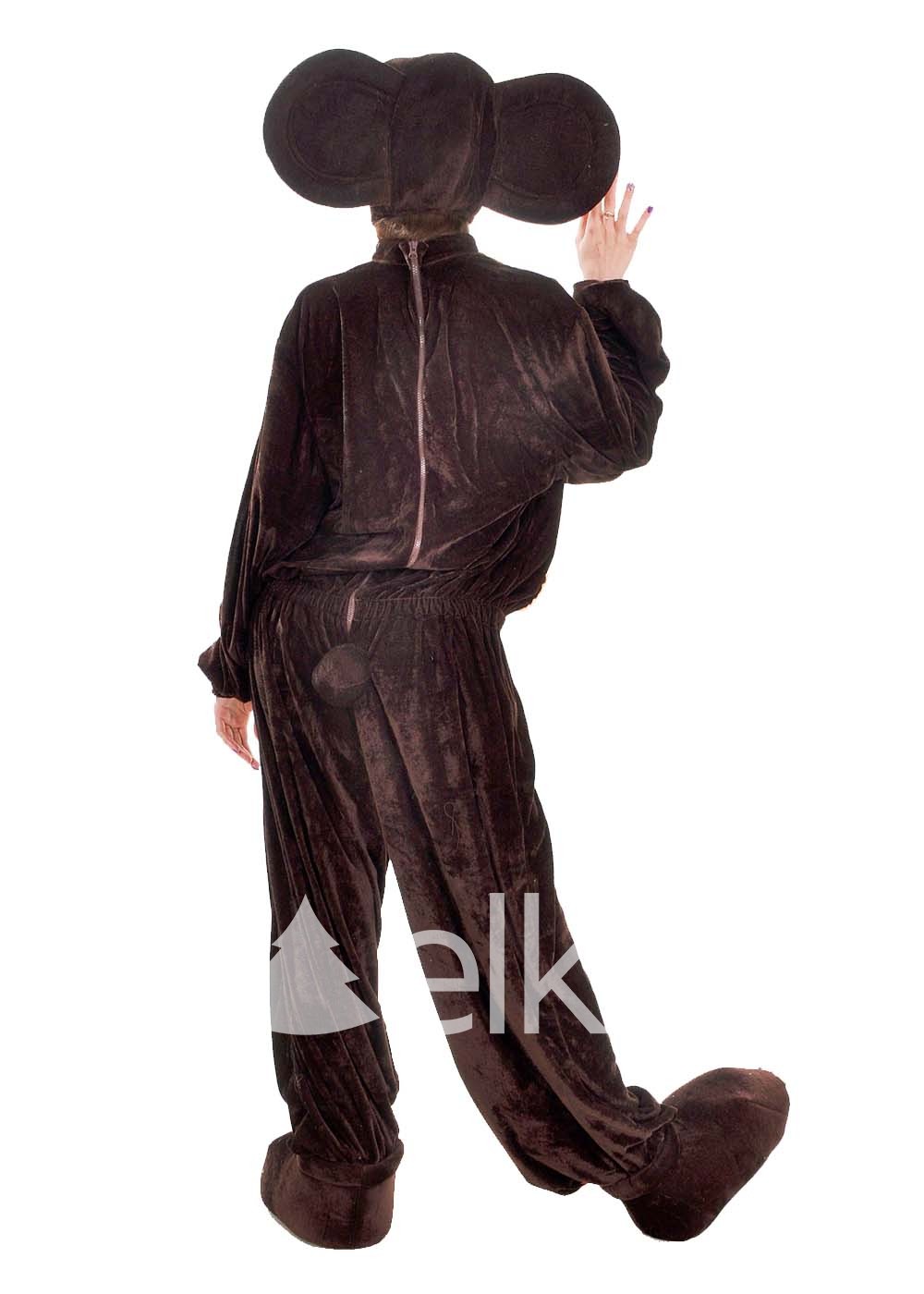 Представлен в категории Мультфильмы и сказки и предлагается в едином размере, который подойдет для параметров от 44 до 52 размера. Карнавальный наряд подойдет взрослым обоих полов. Выполнен из высококачественного велюра и укомплектован комбинезоном, головным убором и имитацией обуви. Коричневый комбинезон застегивается на молнию сзади и украшен маленьким хвостиком. Мягкие бахилы, имитирующие лапки сказочного персонажа и головной убор в виде шапочки с большими ушами дополняют образ.