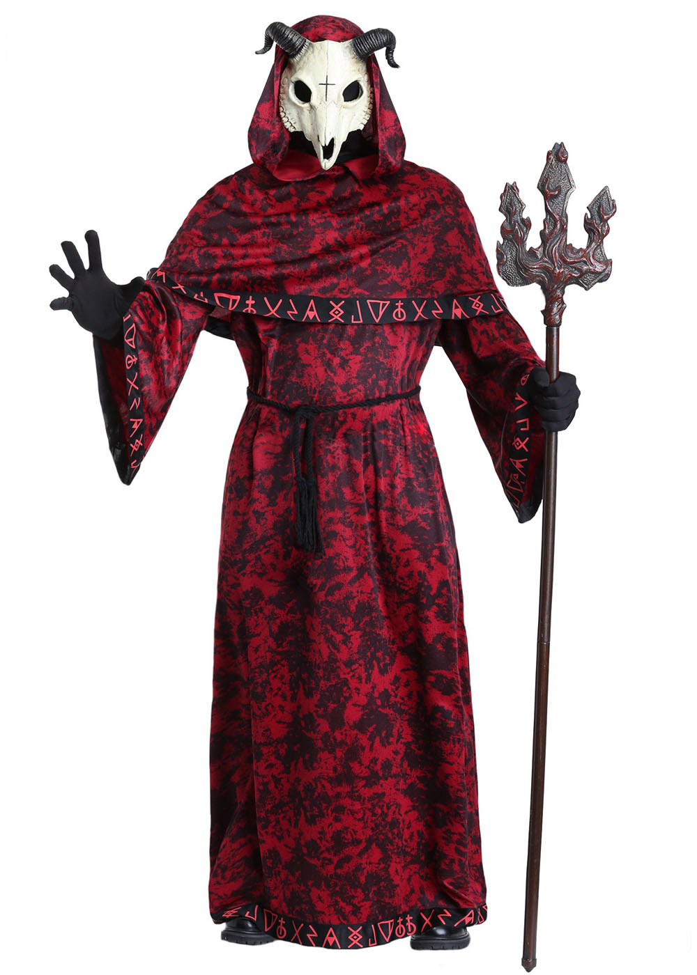 Костюм мага-демона состоит из халата с капюшоном и пришитыого плаща. Капюшон застегивается на липучку сзади на шее. В комплекте есть верёвочный пояс для крепления по желанию. Маска с эластичной лентой для крепления сзади головы.