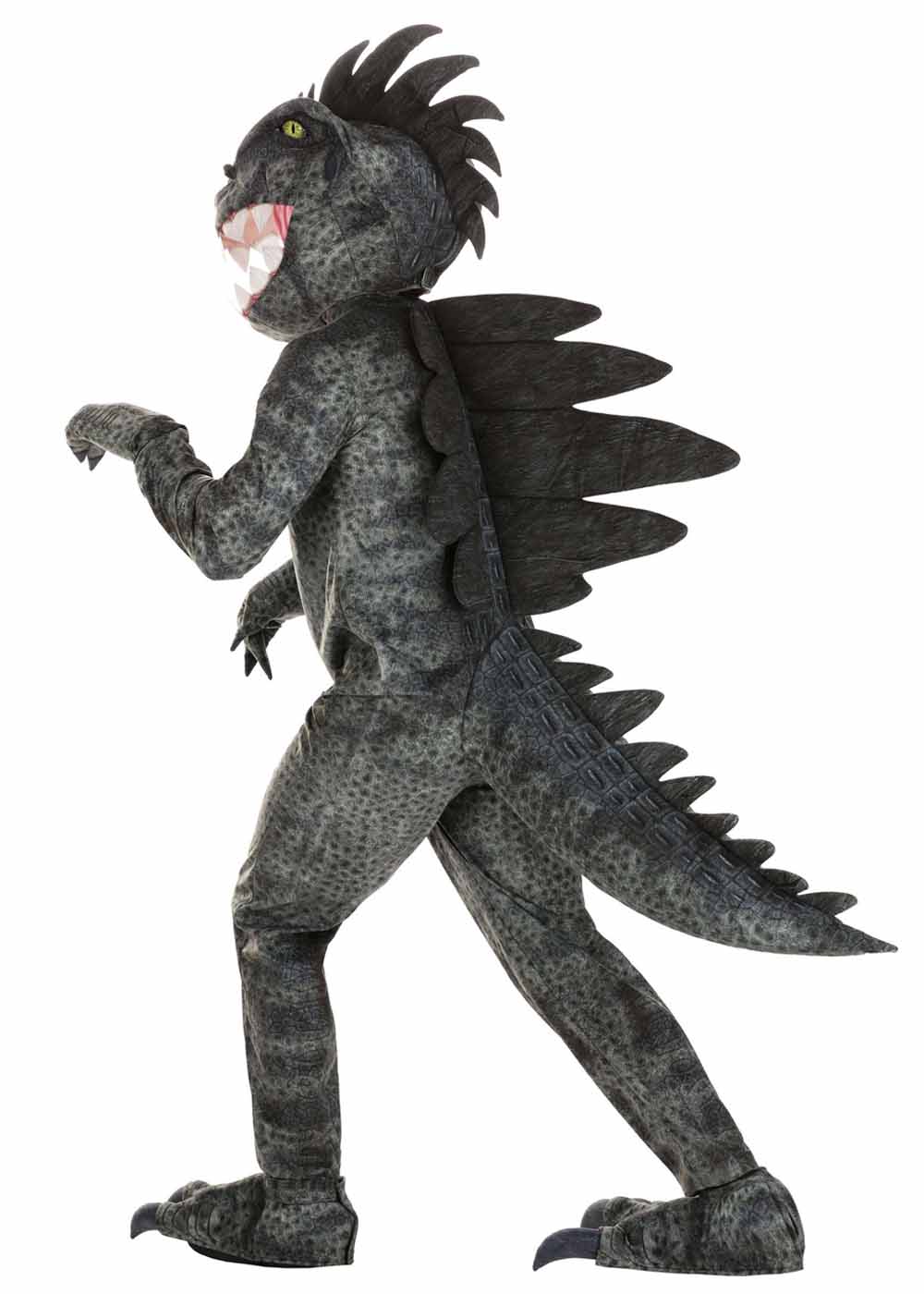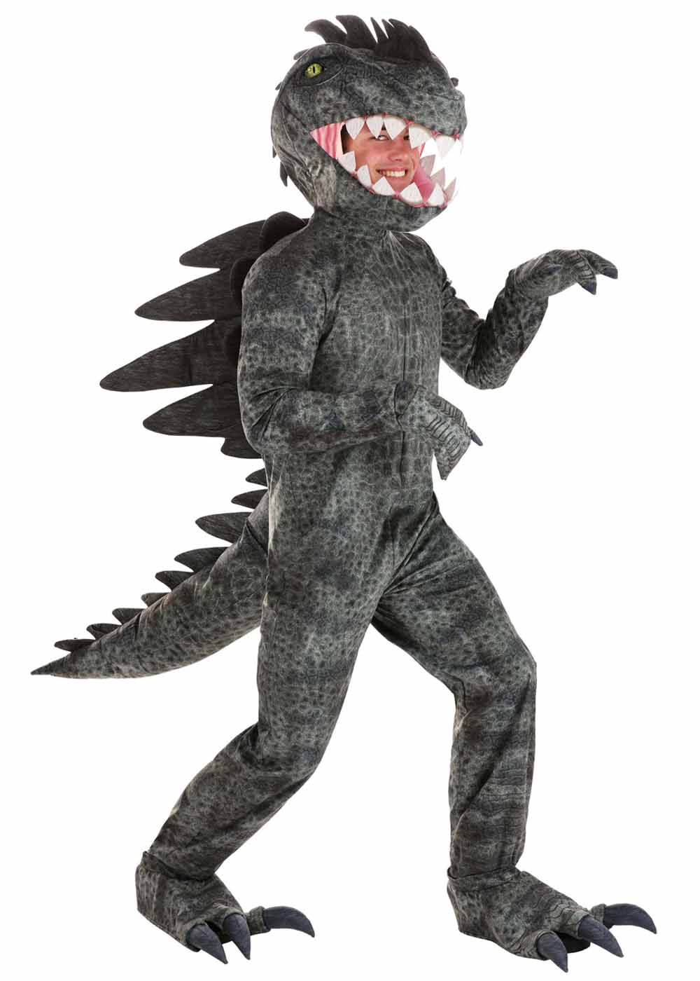 Костюм Динозавра Гиганотозавра представляет собой впечатляющий образ. Комбинезон с принтом и молнией спереди легко надевать и снимать. Манжеты на рукавах и щиколотках делают костюм удобным и плотно прилегающим. Шипы из поролона, пришитые к спине, создают реалистичный вид, а наполненный хвост завершает образ. Перчатки с мягкой подкладкой защищают руки и добавляют комфорта. Головной убор с поролоновой подкладкой, вышитыми зубами и застежкой липучкой сзади легко надевается и снимается. Накладки на ноги с когтями и эластичными ремнями плотно сидят на ногах и завершают образ гигантозавра.