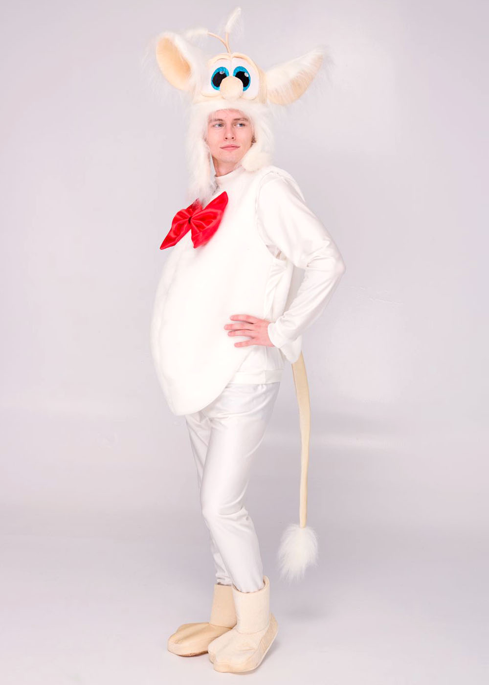 Карнавальный костюм Домовёнок Буба представляет категорию "Мультфильмы и сказки". Выполнен из качественных материалов: бифлекс, мех, креп-сатин, велюр. Костюм предлагается в размере M-L и включает все необходимые элементы для полного перевоплощения в персонажа. Кофта с длинным рукавом и штаны пошиты в белом цвете из ткани бифлекс. Меховая жилетка декорирована спереди объемным красным бантом, сзади хвостом. Головной убор и обувь дополняют комплектацию. Этот костюм подарит вам незабываемые моменты и море положительных эмоций на любом мероприятии.