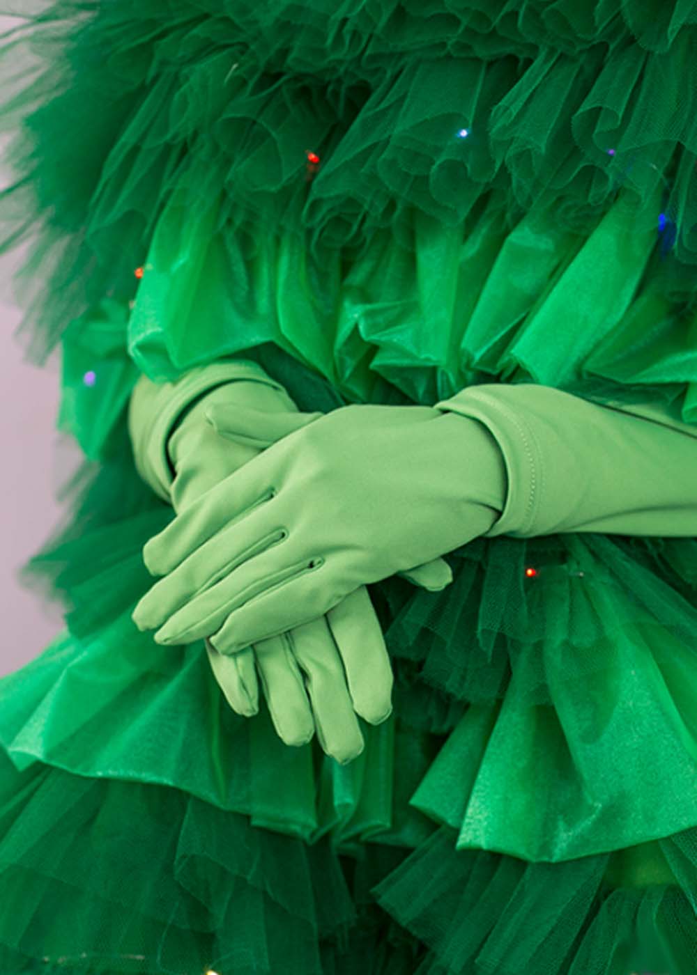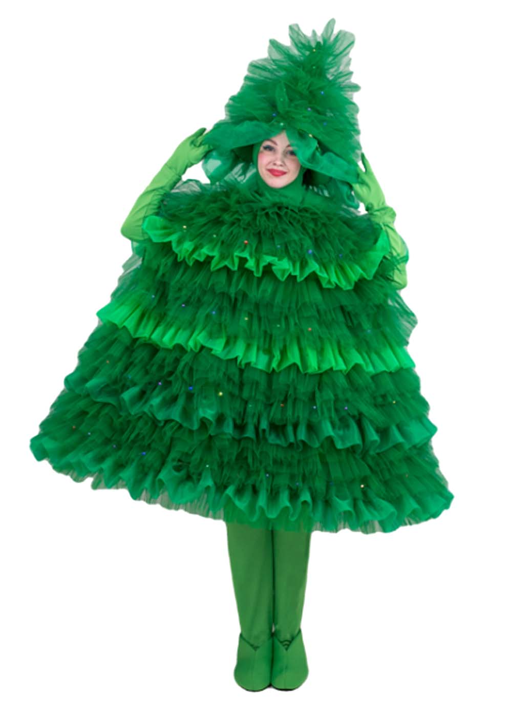 Костюм Елочка превратит вас в настоящую звезду любого новогоднего вечера. Платье с фатиновыми вставками разных оттенков придает вашему образу изысканности. Головной убор в виде колпака с фатиновыми вставками,кофта, лосины и пара перчаток из зеленого бифлекса обеспечивают комфорт и уют, а гирлянда создает атмосферу веселья и радости. В костюм входит также пара обуви на поролоновом каркасе, обтянутом тканью, с полиуретановой подошвой, чтобы вы могли чувствовать себя уверенно и комфортно.
