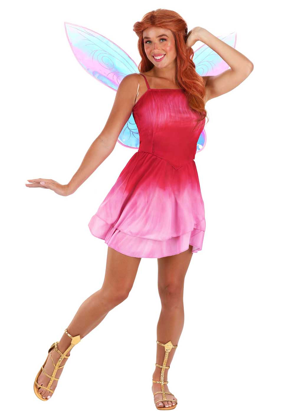 Костюм Феи Розетты воплощает в себе магию и волшебство. Розовый топ без рукавов подчеркивает изящную фигуру и служит основой для юбки, выполненной из слоев ткани, имитирующих лепестки цветов. Каждый слой украшен блестящими акцентами, которые переливаются на свету. Крылья имеют прозрачные, регулируемые по длине плечевые ремни, которые обеспечивают удобную и надежную фиксацию. Костюм создает полный волшебный образ, добавляя нотку грации и загадочности в каждое движение.