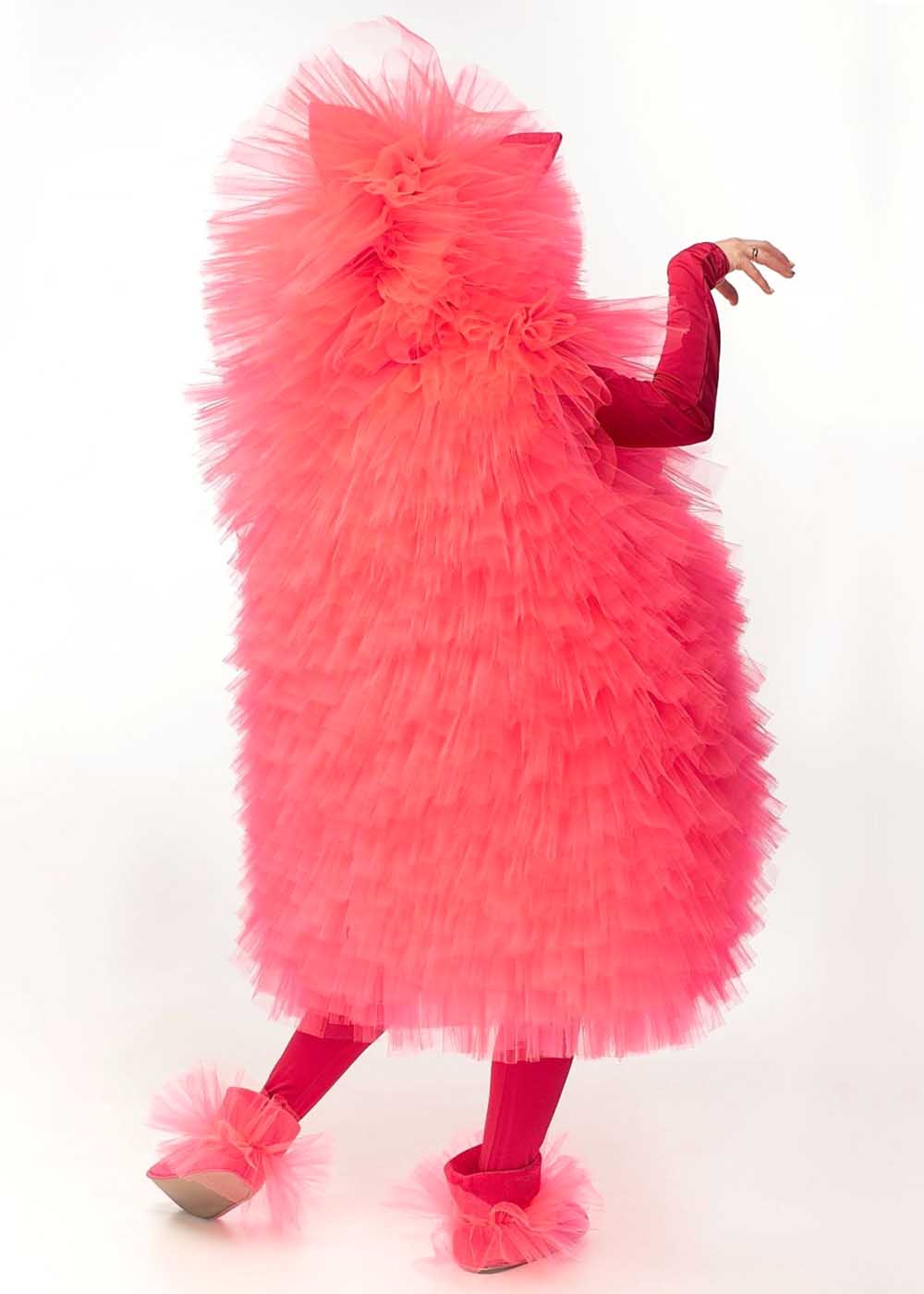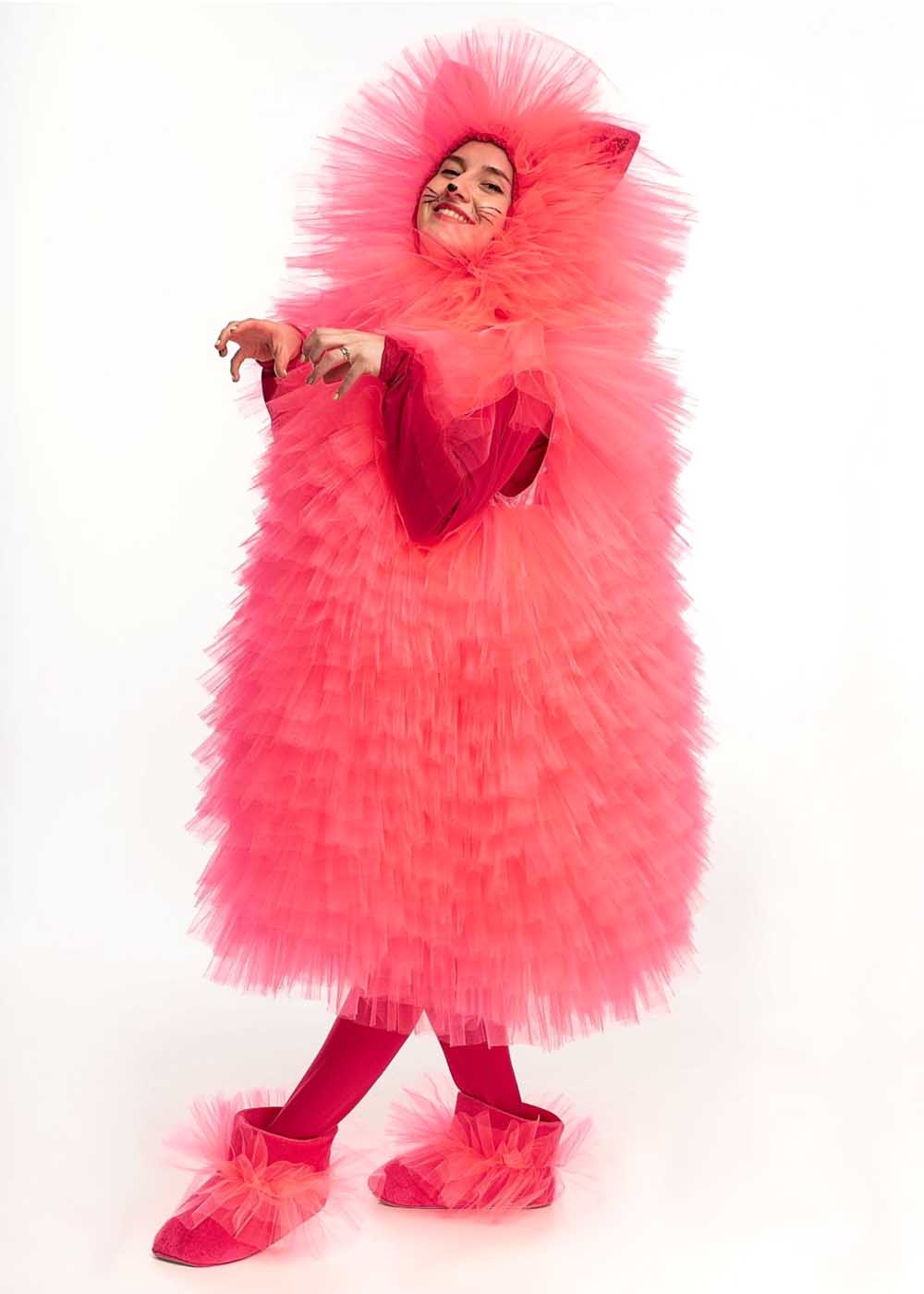 Костюм Фьека Кошки – это великолепный выбор для аниматоров, выполненный из качественных материалов. Пышное розовое платье из многослойного фатина создаёт воздушный и яркий образ. В комплект входят блуза с капюшоном, гетры и имитация обуви, украшенная фатином, которые прекрасно дополняют платье. Блуза и гетры имеют чуть более насыщенный оттенок розового, что придаёт костюму гармоничность. Завершающая деталь – ушки кошки, которые придают костюму милый и игривый вид.