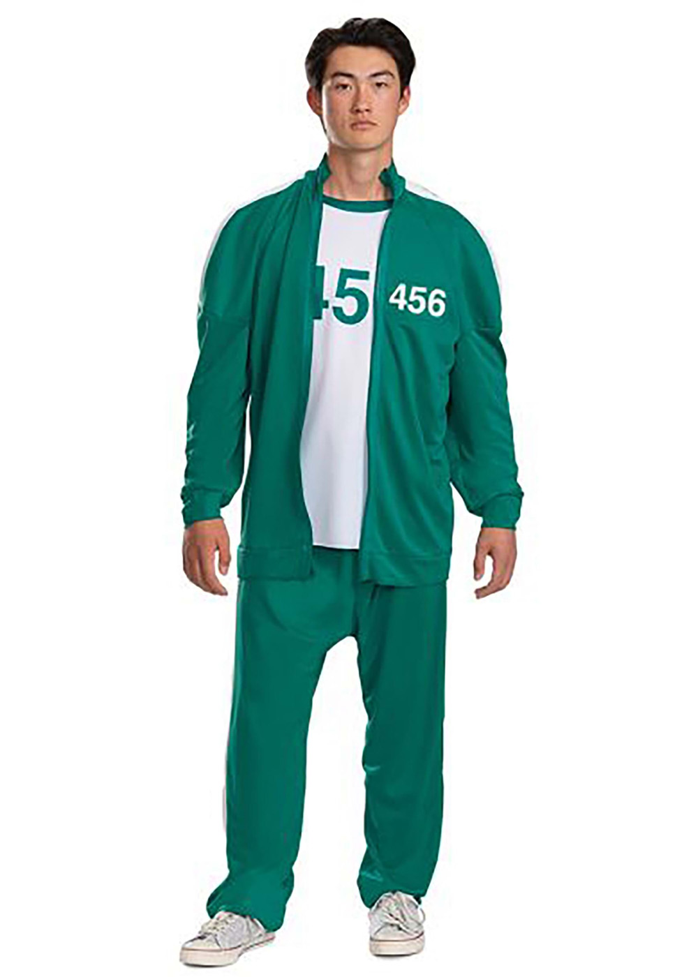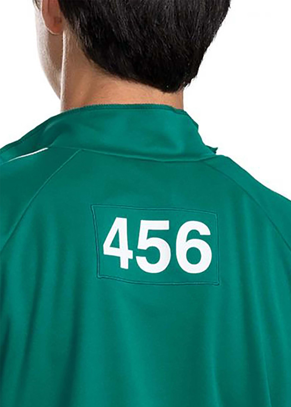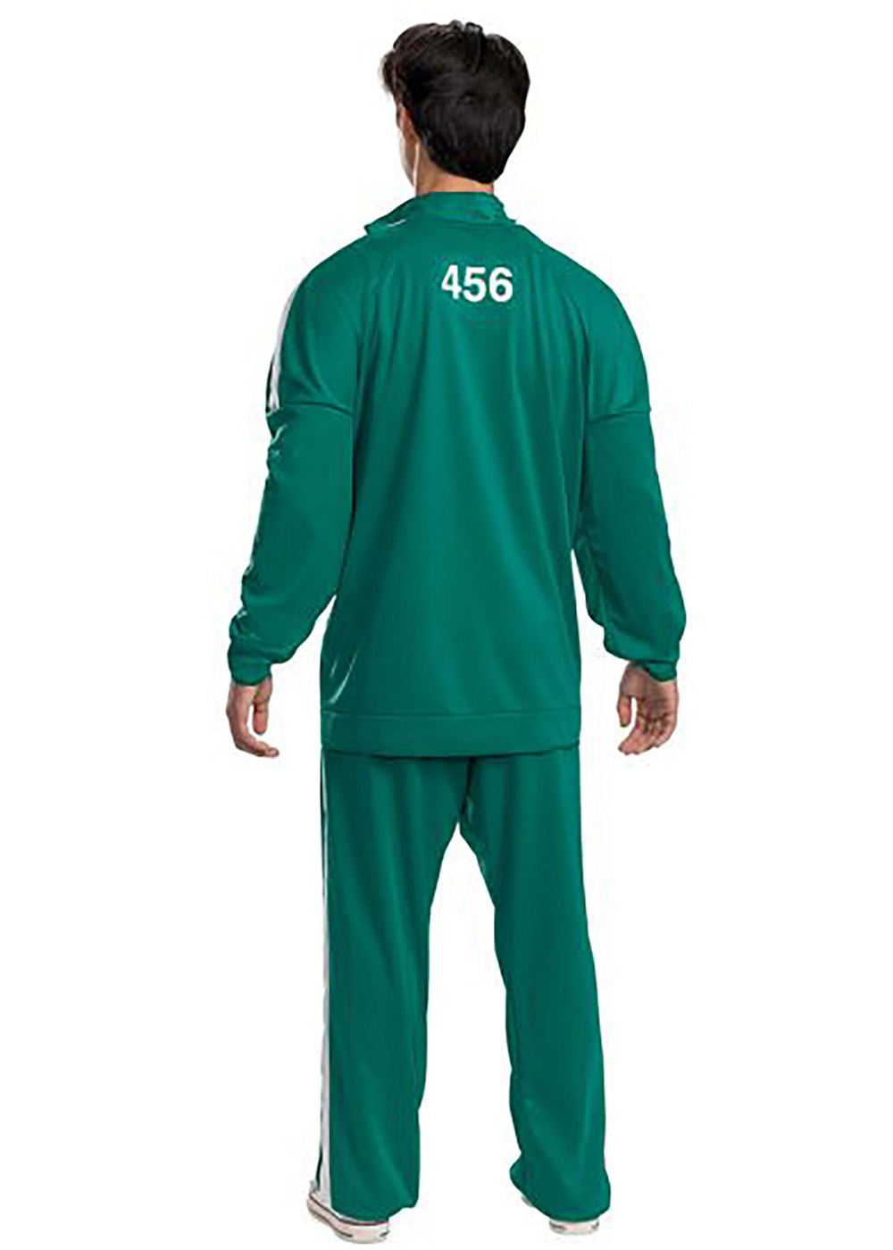 Кофта-рубашка из трикотажного полотна. У куртки декоративная молния (не функциональная, без застёжки). Рубашки имеет нанесенный номер 456 и контрастную воротниковую ленту. Нанесение "456" на спине и на левом переднем кармане. Брюки с эластичным поясом, вшитые белые боковые полосы.