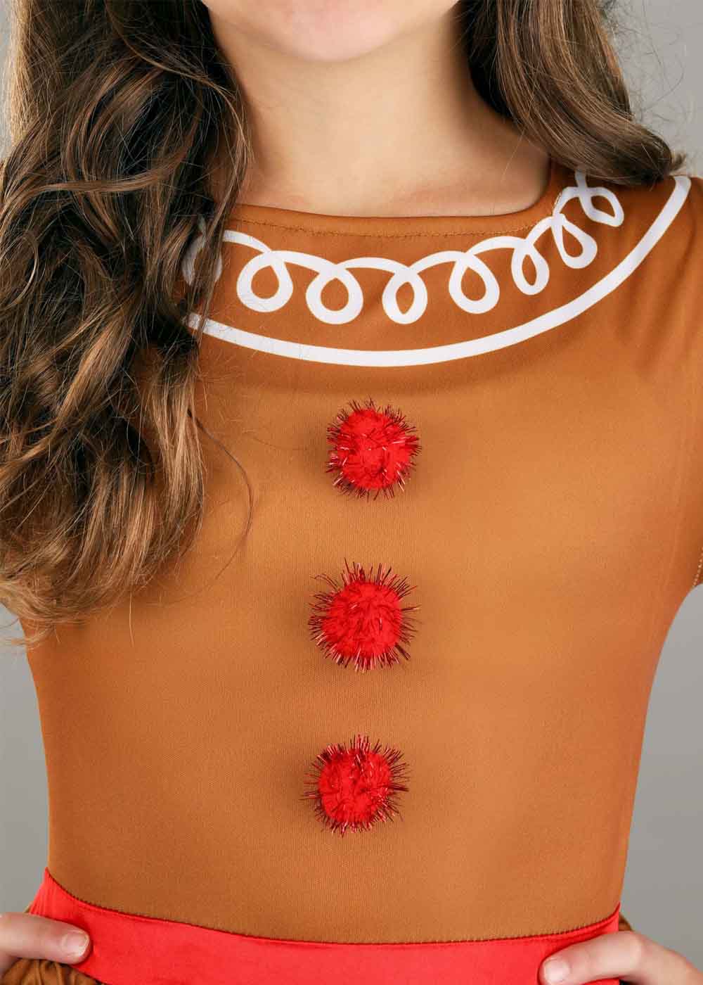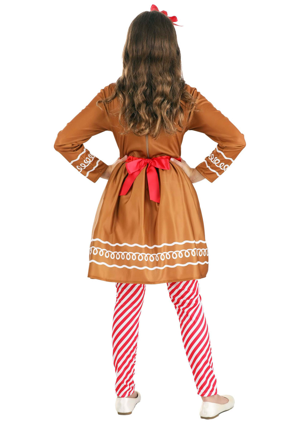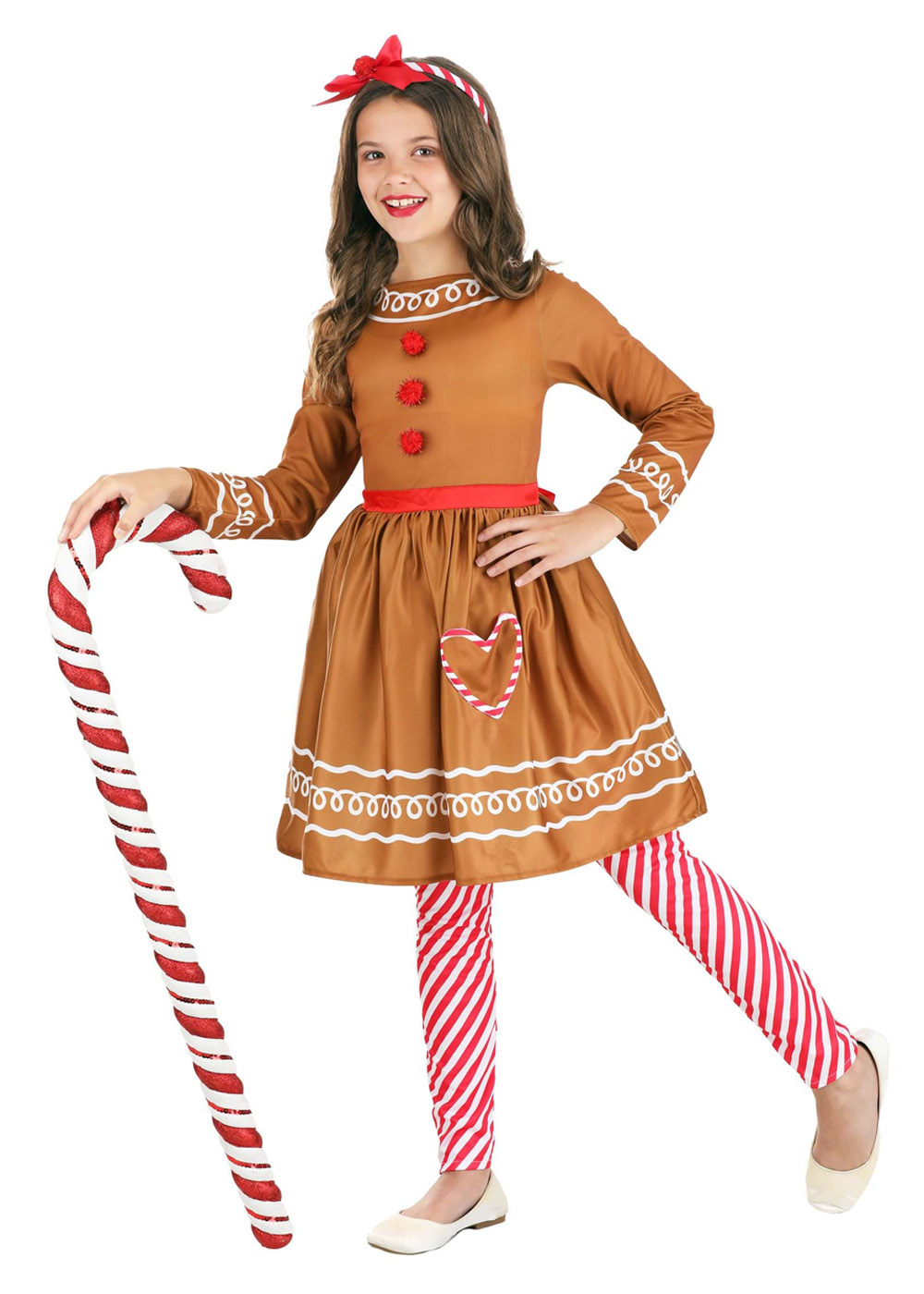 Костюм Имбирной леди. Платье на молнии, вшитый атласный пояс на талии, подъюбник. На передней левой части юбки есть карман в форме сердца. Полосатые лосины на резинке. Повязка на голову украшена ленточным бантом, помпоном.