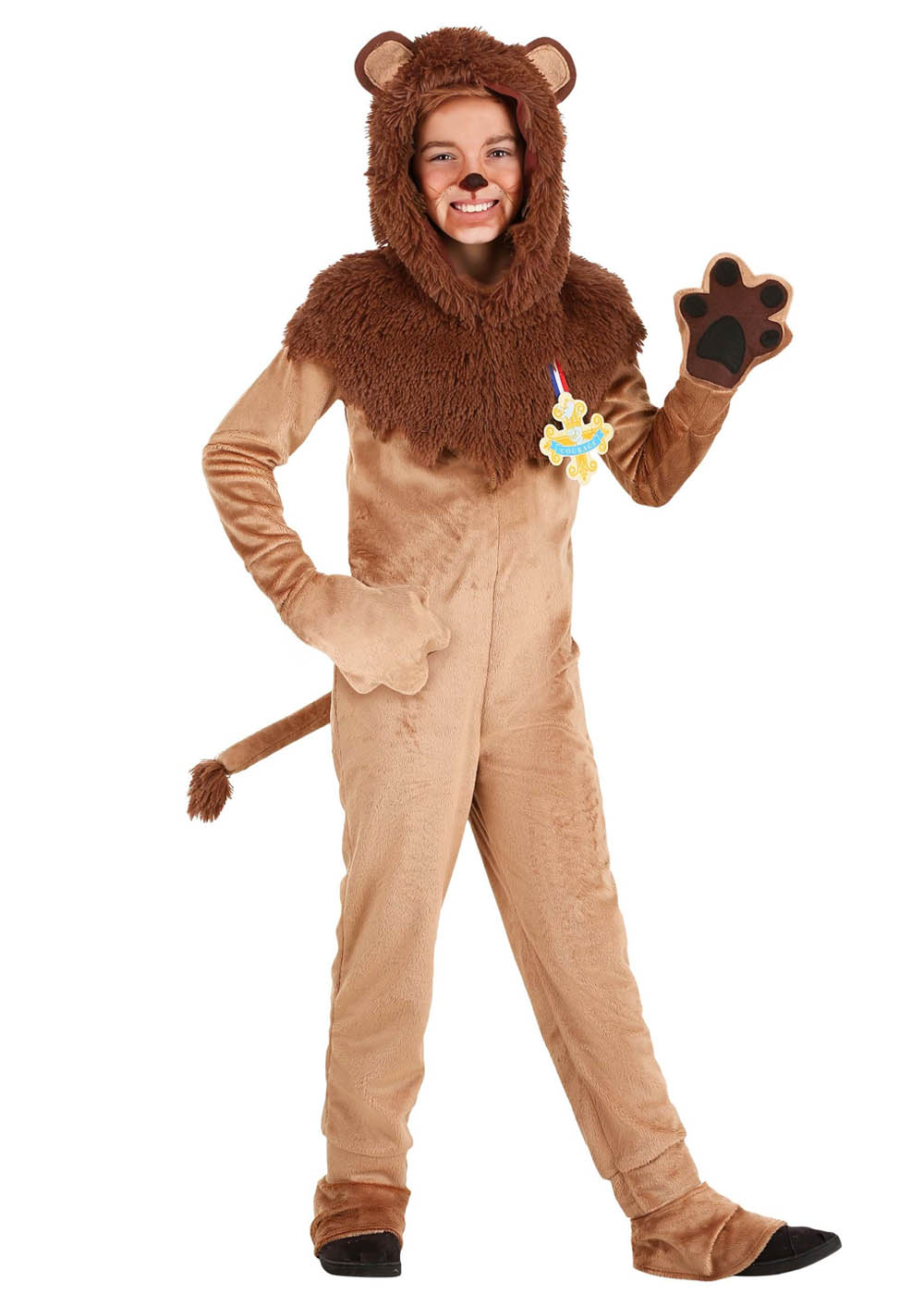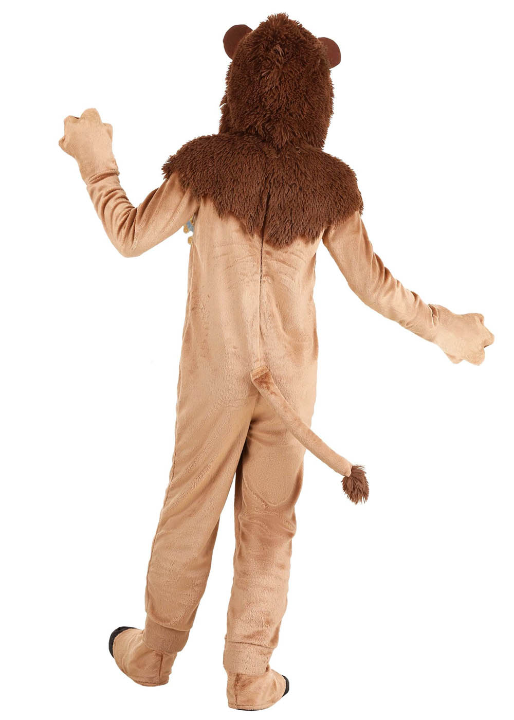 Костюм трусливого Льва представляет собой мягкий комбинезон из велюра с задней молнией. Накладные перчатки, пришитые к манжетам, могут отворачивается назад, освобождая руки. На ладонях накладных рукавиц наклеены лапы с подушечками. На спине костюма пришит хвост с искусственным мехом на конце. На передней части костюма расположена фетровая медаль "Мужество" на полосатой ленте. Накладки на обувь с эластичными резинками под подошвой.