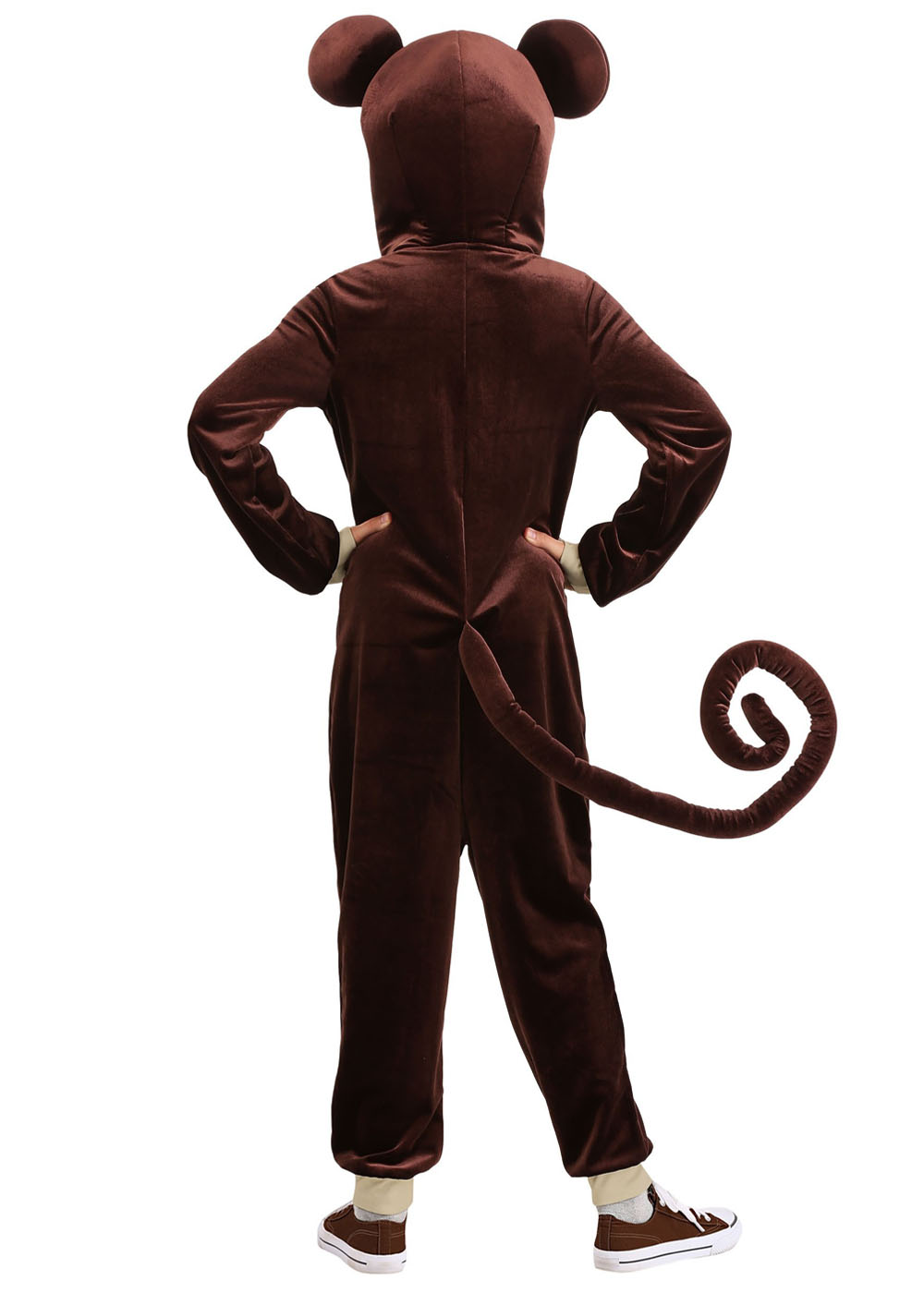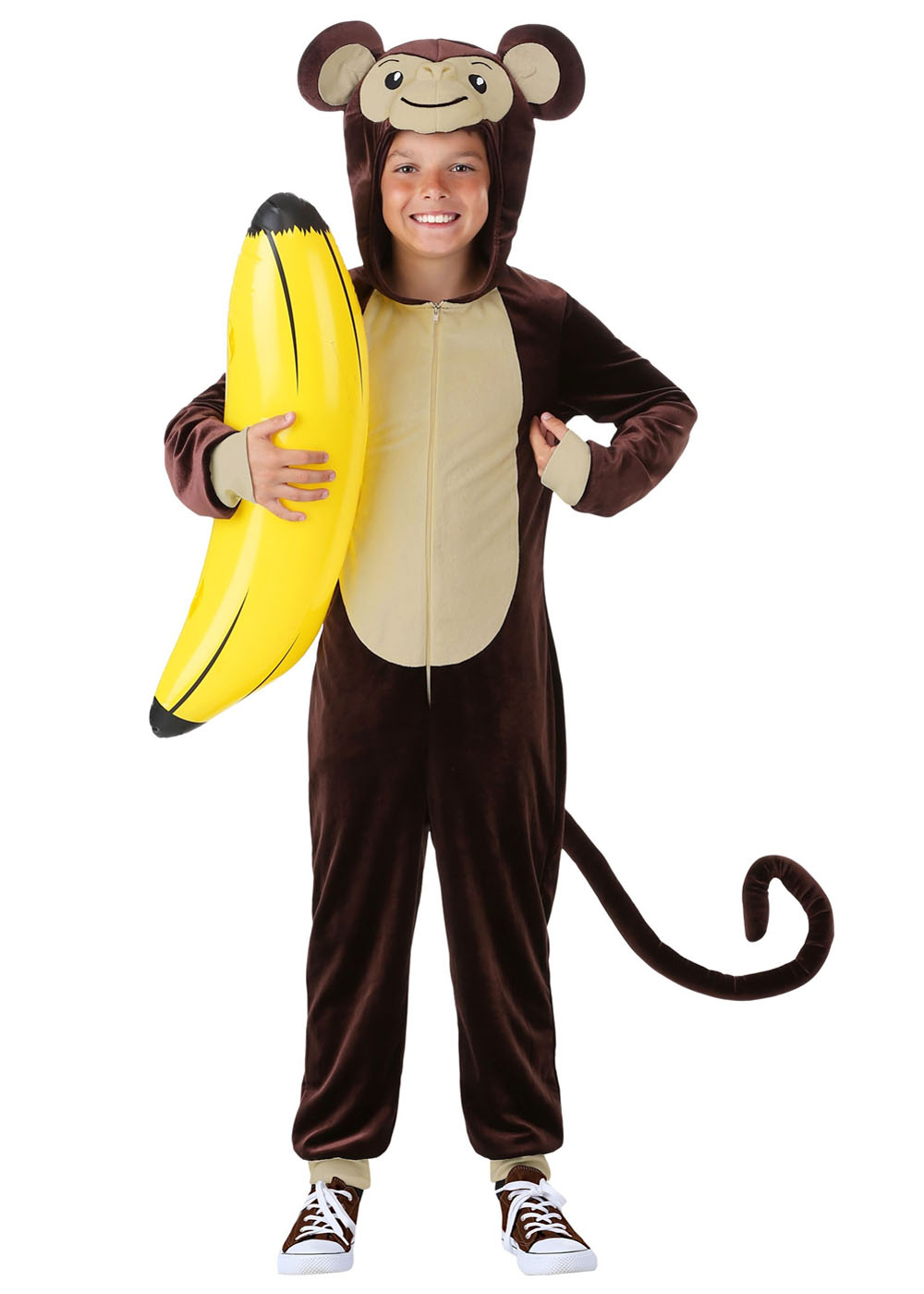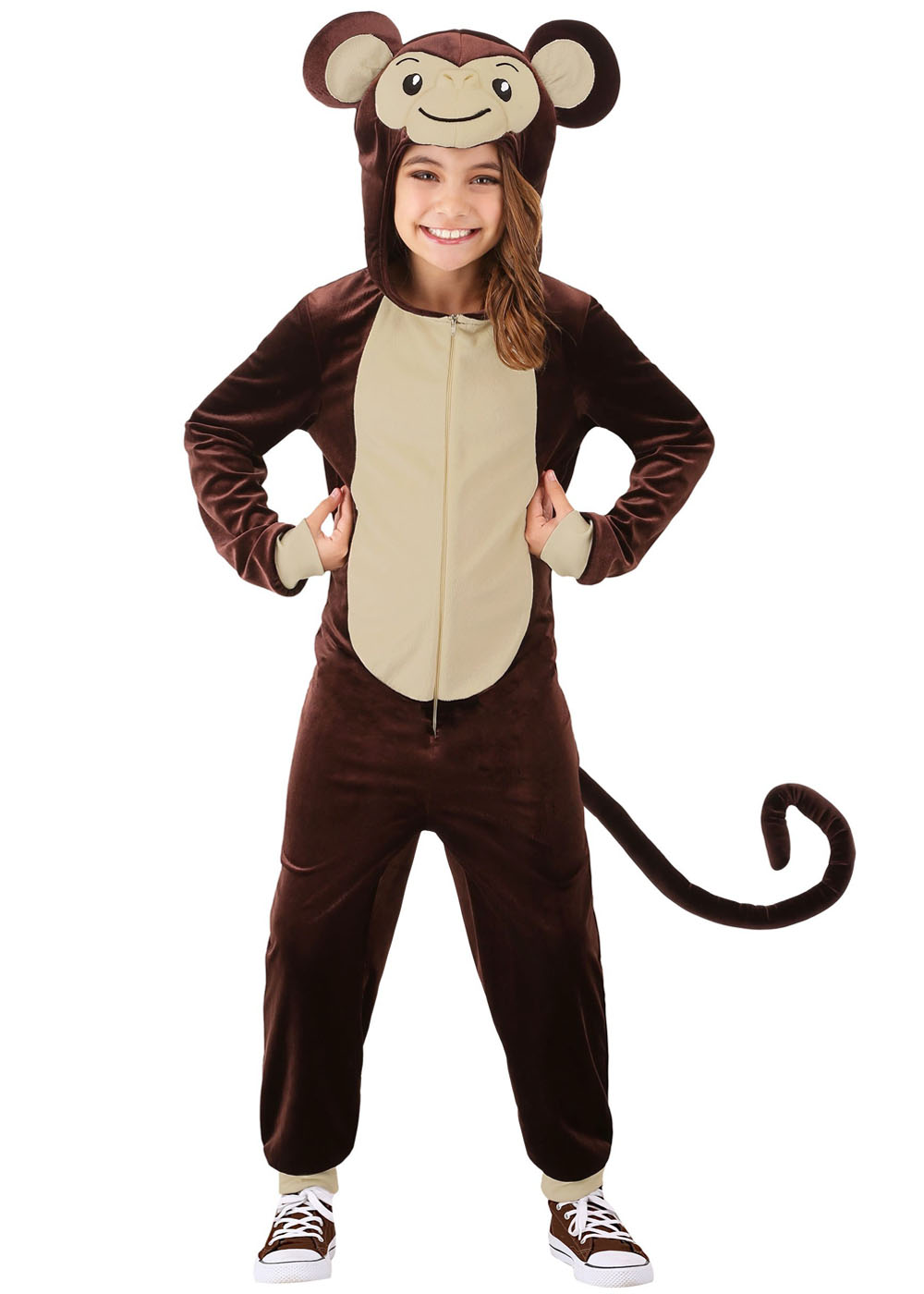 Костюм Обезьянки выполнен из полиэстера. Комбинезон с застежкой на молнию спереди для удобства. Форменный хвост с гибкой проволокой, позволяющей придавать ему нужную форму. Пришитый капюшон имеет рот и черты лица для создания реалистичного вида. Манжеты на запястьях и ногах выполнены из ребристого трикотажа.