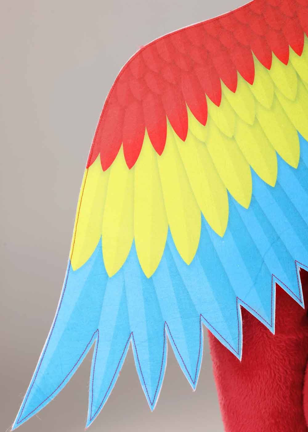 Костюм Попугай Ара создает яркий и веселый образ. Плюшевый комбинезон застегивается спереди на молнию, что облегчает надевание. Капюшон с подкладкой украшен плюшевыми перьями, вышитыми глазами и клювом, что делает костюм необычным. Сзади пришит хвост, который добавляет реалистичности, а крылья с эластичными ремнями на плечах удобны и надежны в носке. Костюм идеален для веселых мероприятий и праздников, придавая яркий и запоминающийся вид.