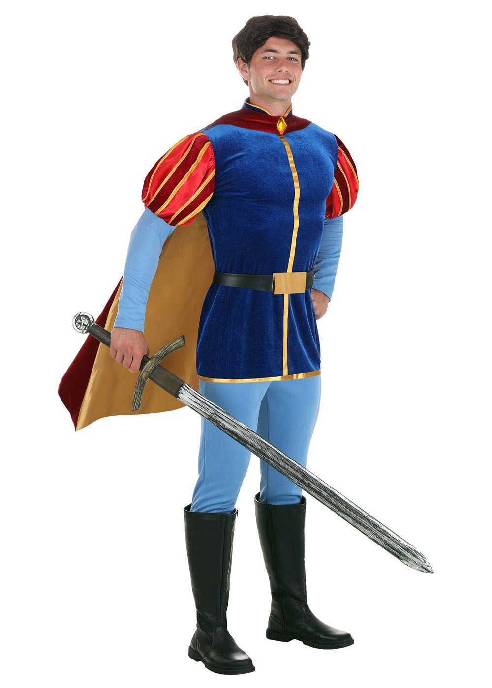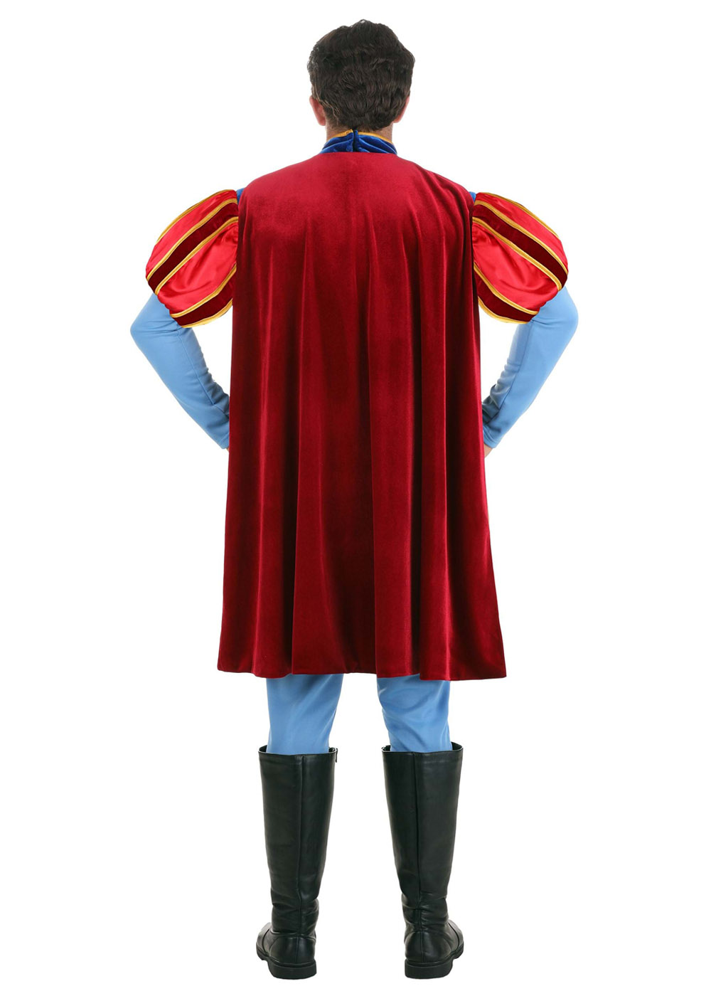 Кофта костюма принца Филиппа застегивается на липучку по центру спины. Основа кофты выполнено из синего бархата с металлической тканевой отделкой, рукава сшиты из атласа сверху и эластичного трикотажа снизу. Брюки из эластичного трикотажа с эластичным поясом. Кожаный пояс с липучкой сзади и декоративной золотистой металлической пряжкой спереди.