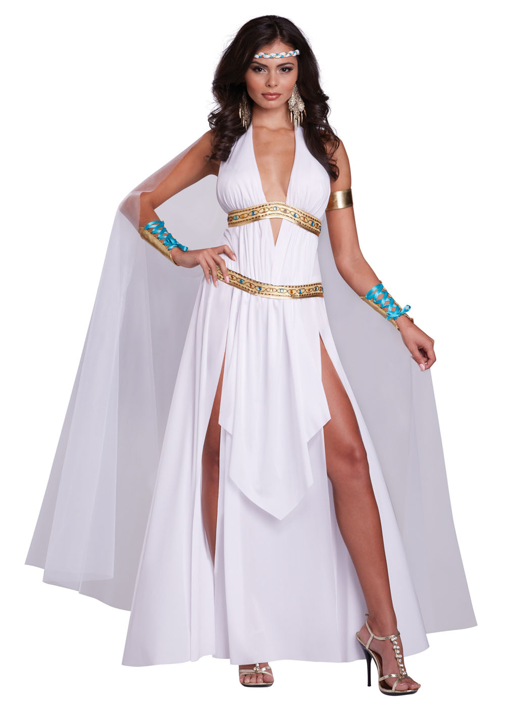 Очаровательный костюм Римской богини призван превратить любую носительницу в воплощение благородства и изящества. Его платье с глубоким вырезом на груди и разрезами до бедра придаёт образу элегантность и страстный шарм. Наплечник из мягкой ткани, дополненный завязками, воплощает дух античного великолепия, а браслеты на руках из эко-кожи, украшенные атласными лентами, придают образу завершённость и изысканность. С этим костюмом вы войдёте в мир древнеримских богинь, олицетворяя изящество и власть.