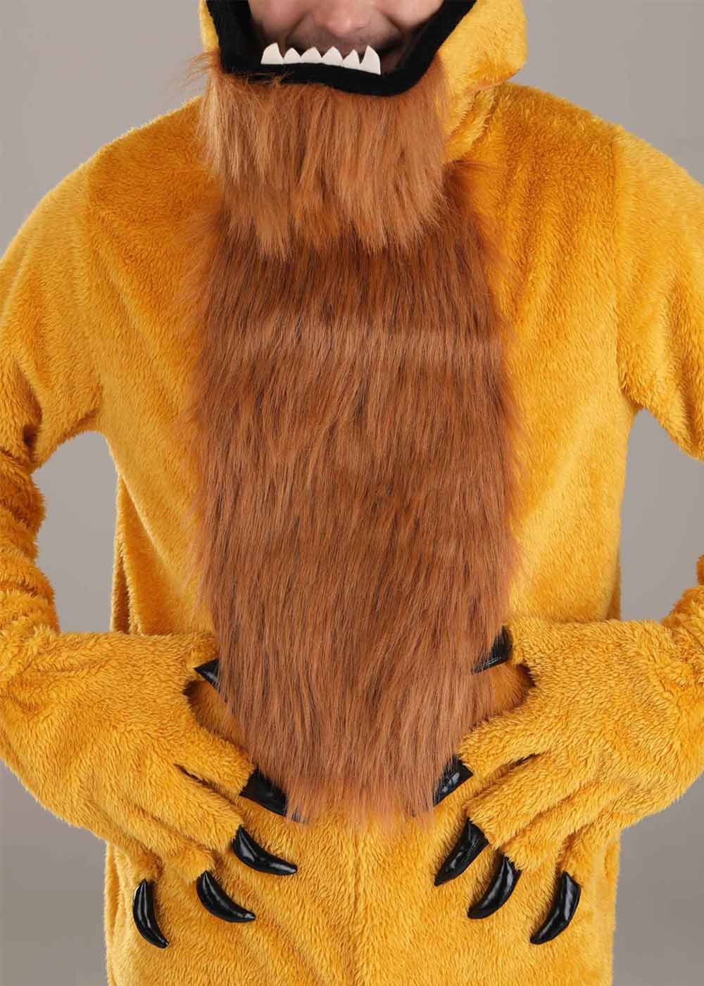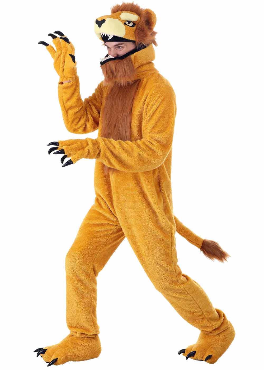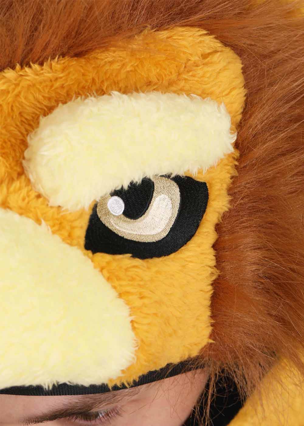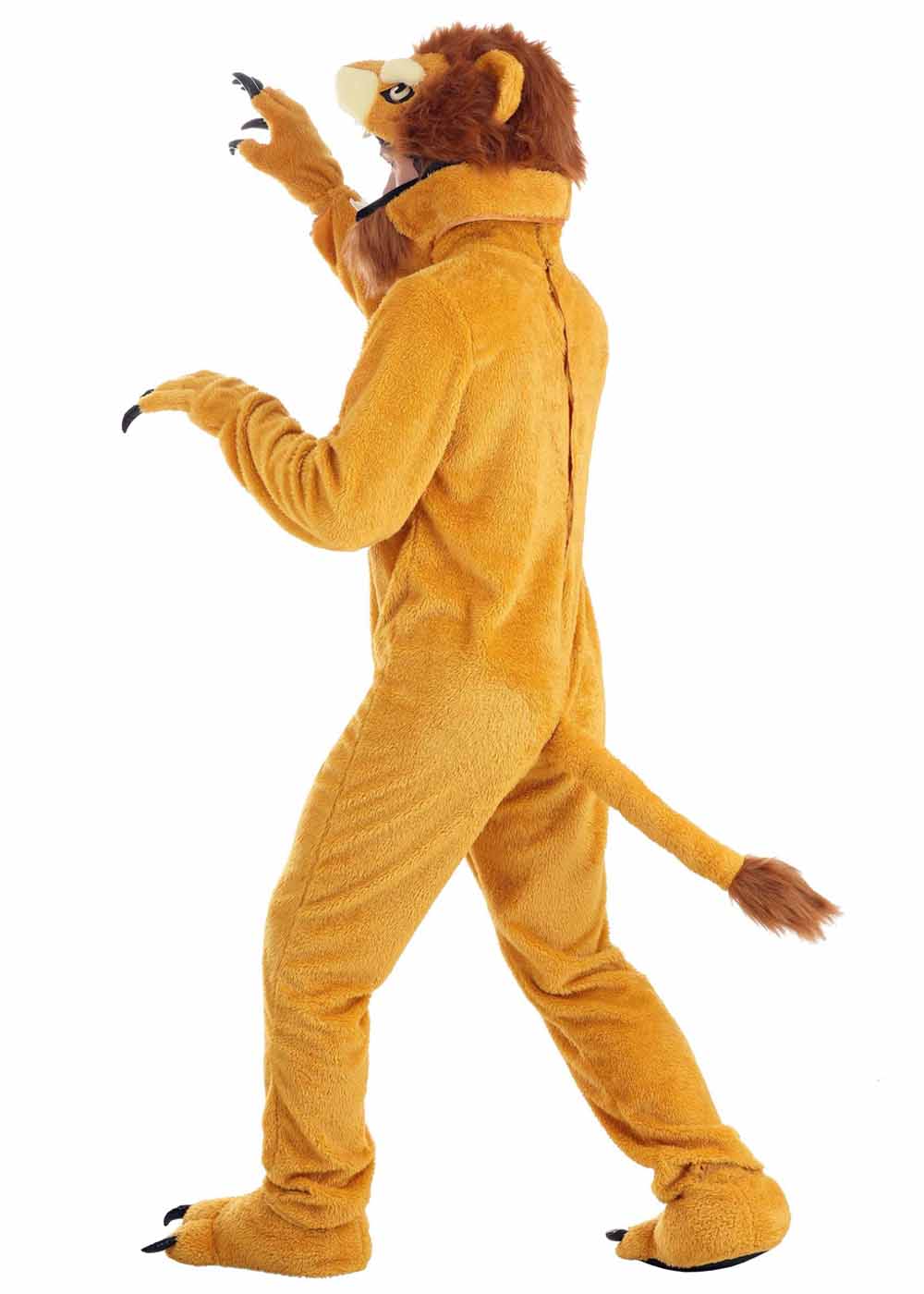 Костюм желтого Льва включает мягкий комбинезон из искусственного меха с застежкой на липучке по центру спины. На спине пришит хвост. Пришитые перчатки с вырезами для их снятия. Обувь с эластичными резинками, украшены когтями на пальцах стопы, а также имеют антискользящий материал на подошве.