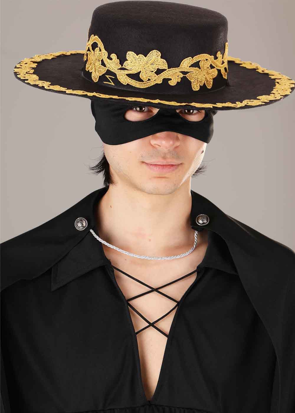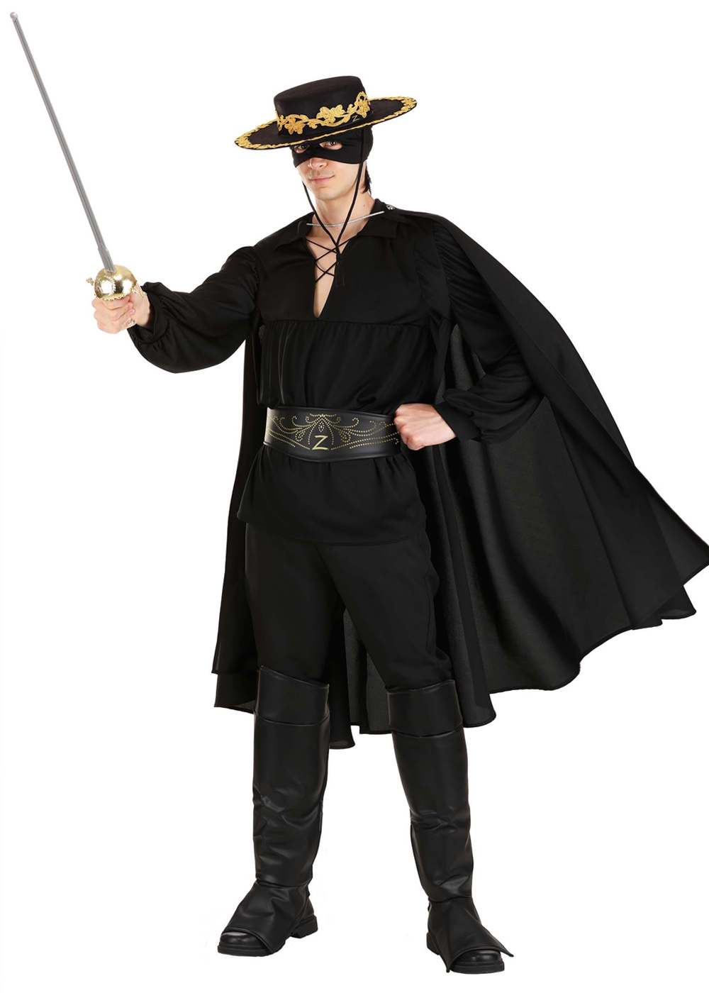Превратитесь в Зорро с этим костюмом! Брюки с эластичным поясом. Ремень из искусственной кожи, застегивающийся на липучку сзади. Накладки на ботинки с эластичными резинками под подошвой и по заднему краю. Накидка с серебряным шнуром и застежкой-липучкой на передней части шеи, шнур крепится декоративными пуговицами из металла. Маска для глаз с завязками. Шляпа с золотой кружевной отделкой.