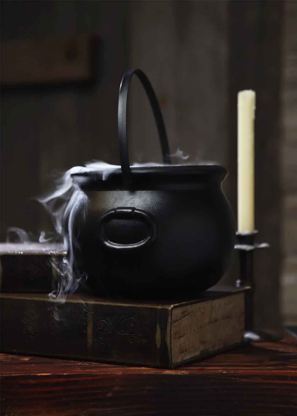 Котел для ведьмы — литой пластиковый казан диаметром 20 см и высотой 15 см. Декоративный котел оснащен поворотной ручкой, добавляющей аутентичности, и станет идеальным аксессуаром для создания магической атмосферы на вашем празднике.