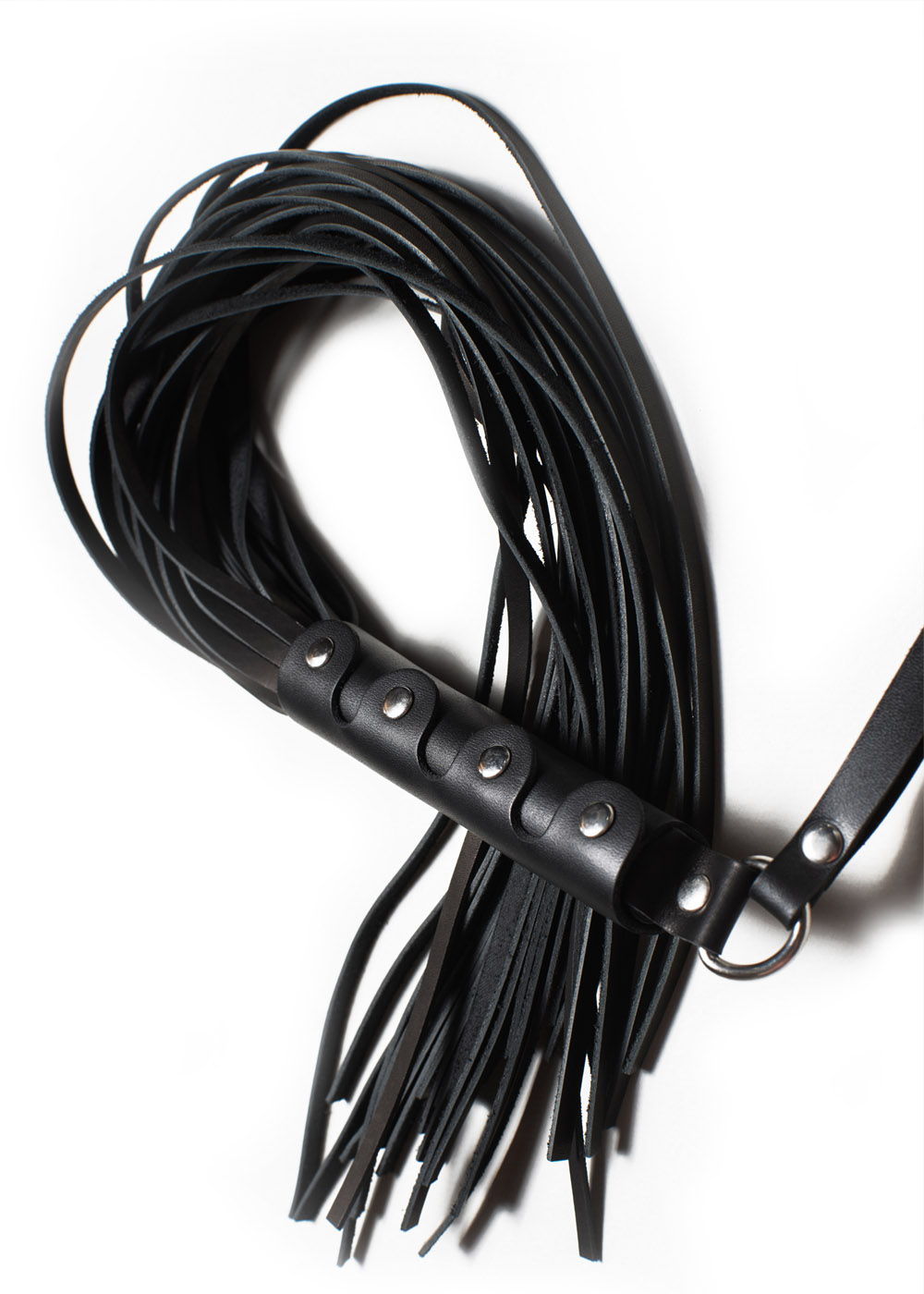Изготовленная из кожи, эта плеть обещает интенсивные и чувственные ощущения при каждом касании. Оснащенная удобной ручкой с металлическим кольцо, она призвана удовлетворить даже самые смелые желания.