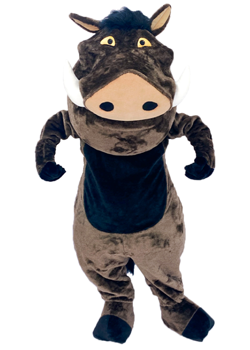 Ростовая костюм-кукла Пумба из мультфильма "Король Лев" привлекает внимание своим забавным и добродушным обликом. Ее голова имеет поролоновый каркас с изолоновыми вставками, обтянутыми мехом, что создает мягкость и комфорт. Тканевые глаза передают выразительность персонажа. Туловище куклы представлено комбинезоном из меха, который точно передает внешний вид Пумбы из мультфильма. Объемный жилет добавляет образу уникальности и стиля. Пара перчаток и обувь с поролоновым каркасом, обтянутым тканью, на полиуретановой подошве, обеспечивают удобство и безопасность при игре.