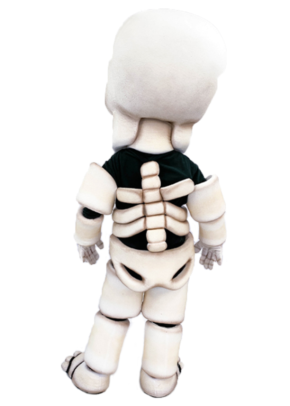 Костюм ростовой куклы "Скелетон" создан для того, чтобы поразить своим мистическим обликом и привлечь внимание на любом тематическом мероприятии. Голова куклы, с поролоновым каркасом, обтянутым флисом, обладает реалистичным видом, а сетчатые глаза и дополнительные вентиляционные отверстия во рту обеспечивают комфорт использования. Туловище куклы украшено водолазкой и штанами из флиса с объемными декоративными элементами, которые придают образу загадочности и стиля. Объемные элементы на ногах создают иллюзию скелетных костей, добавляя аутентичности образу. В комплекте с куклой идут пара перчаток и пара обуви с поролоновым каркасом, обтянутым тканью, на полиуретановой подошве, готовые к захватывающим приключениям в мире тайн и загадок.