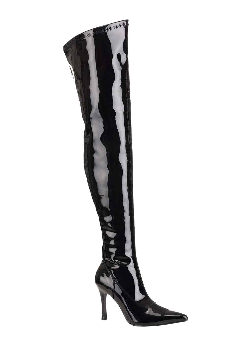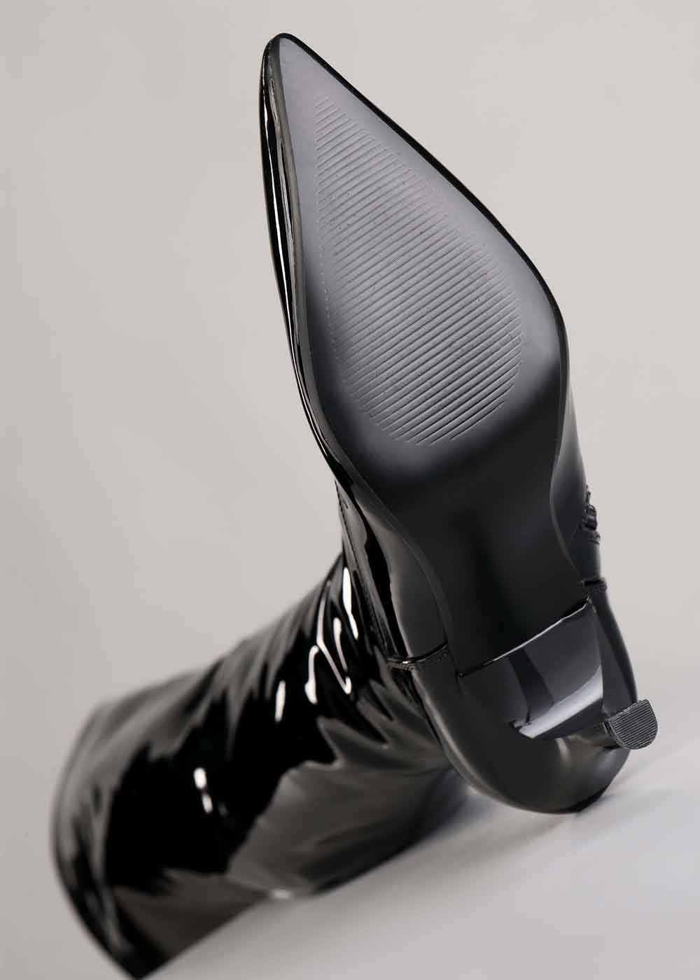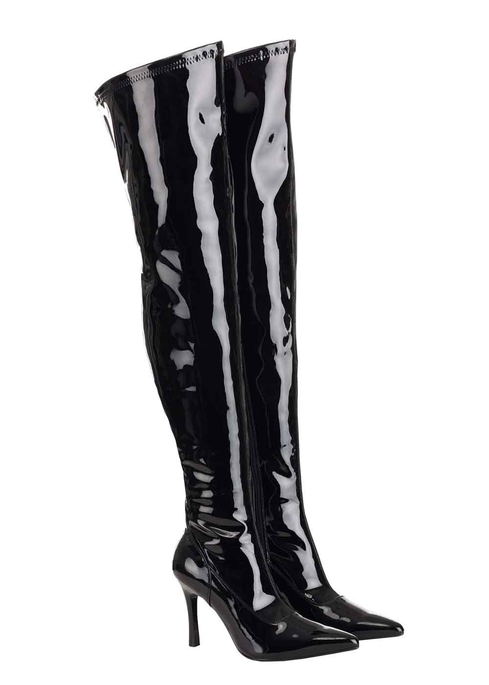 Лакированные ботфорты представляют собой идеальное сочетание стиля и комфорта. Изготовленные из искусственной лакированной кожи, они придают вашему образу блеск и элегантность. Молния на внутренней стороне каждого ботинка делает их практичным выбором для любого случая.