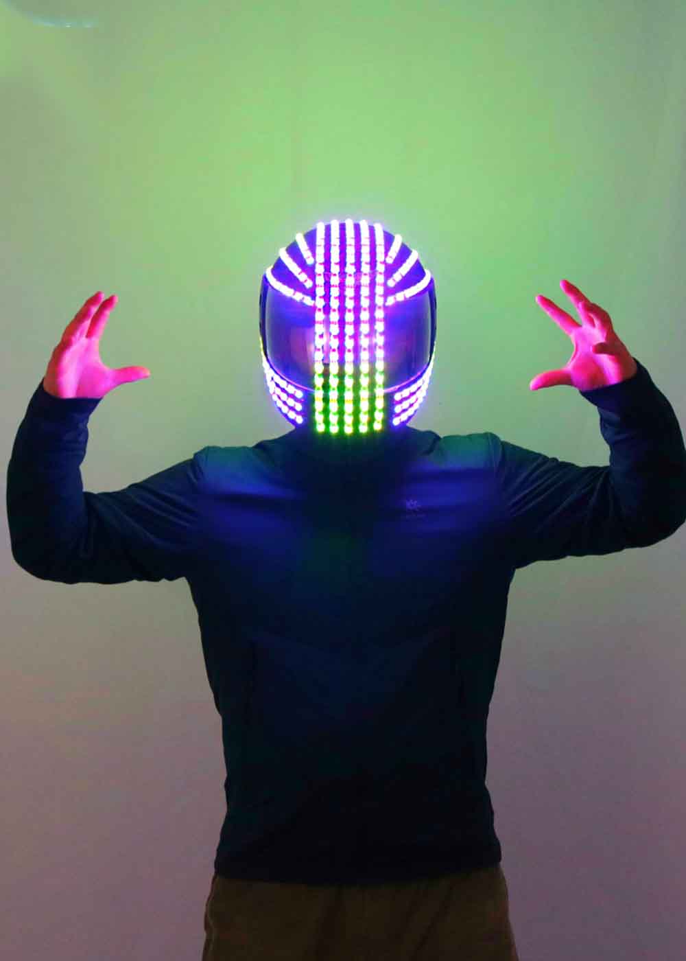 LED шлем — современное и яркое дополнение для любых мероприятий и вечеринок. Cветится до 4 часов, создавая впечатляющее зрелище с помощью пульта дистанционного управления RGB, который позволяет управлять разными цветами и изменять режимы освещения. Шлем работает на высокоемкостных литиевых батареях (батареи не входят в комплект) и включает зарядное устройство для аккумулятора, что обеспечивает продолжительное использование. Размер шлема подходит для окружности головы от 59 - 63 см, гарантируя удобство и комфорт при ношении. Шлем светится в четырех ярких цветах — зеленом, синем, красном и фиолетовом, что позволяет создать уникальную и запоминающуюся атмосферу.