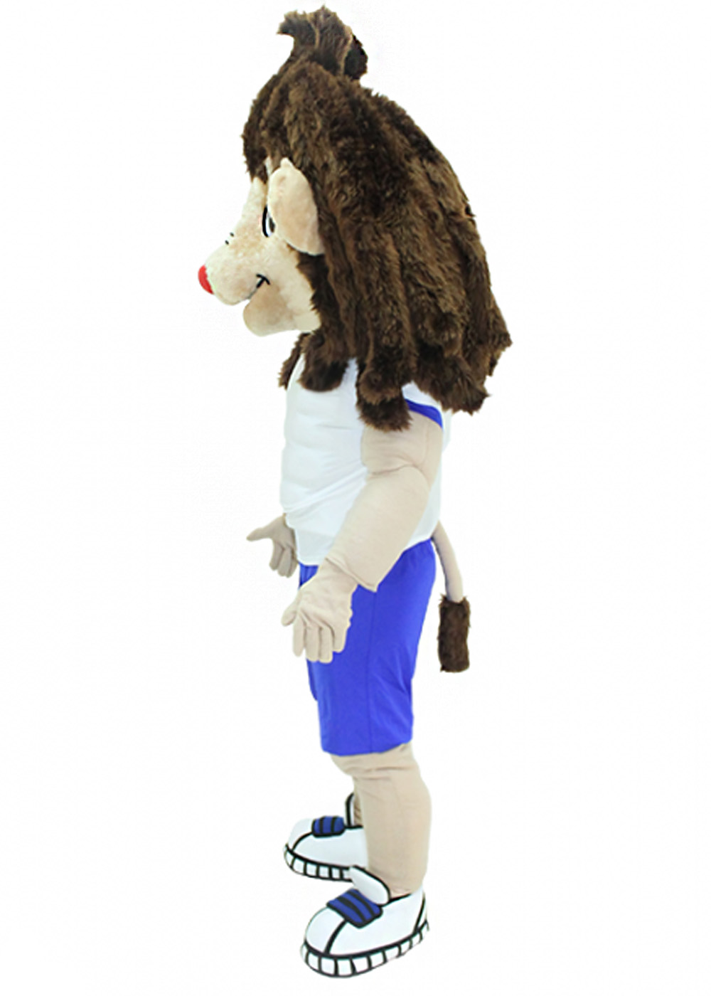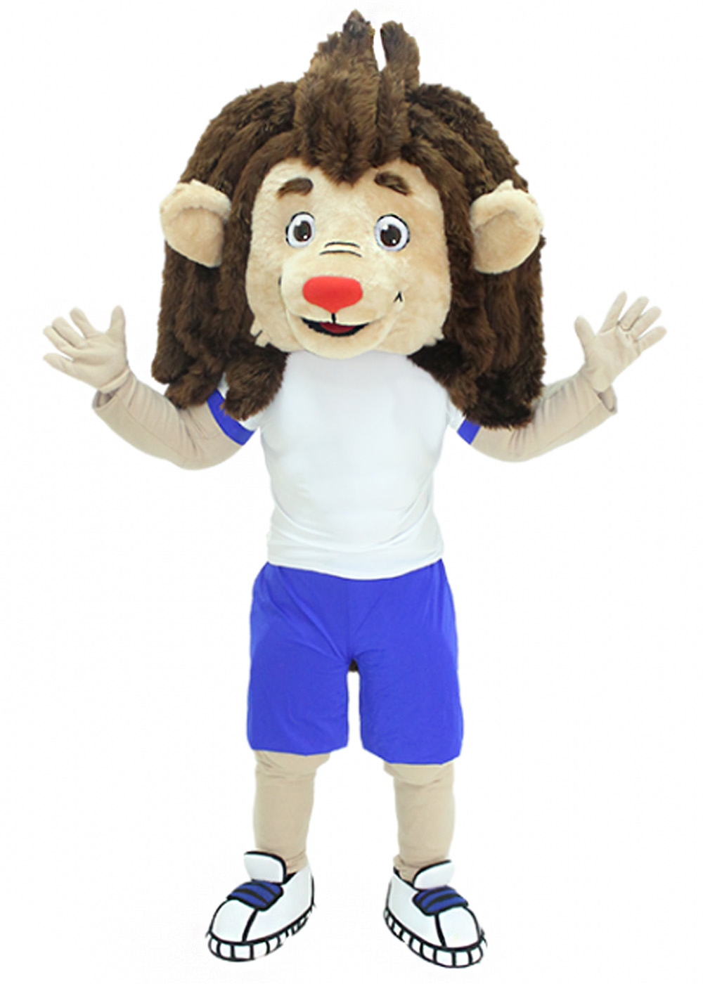 Ростовая кукла Лев спортсмен создает неповторимый образ сильного и яркого спортсмена. Его голова, изготовленная на поролоновой основе и покрытая мягким мехом, обеспечивает удобство и комфорт. Смотровая зона в области глаз, выполненная из сетчатого материала, гарантирует хорошую видимость. Костюм включает в себя кофту, шорты, перчатки и обувь с прорезиненной подошвой.