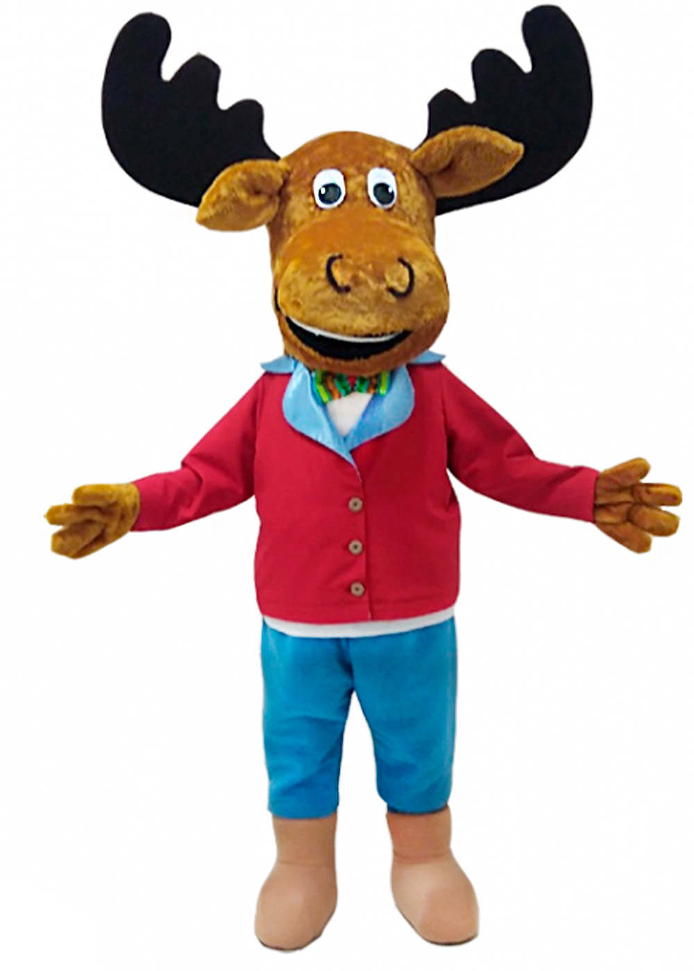 Ростовой костюм лося - это яркий и привлекательный наряд. Голова костюма изготовлена на основе поролона и обтянута мягким мехом, что придает ей особую уникальность и комфорт. Смотровая зона в области глаз выполнена из сетчатого материала, обеспечивая хорошую видимость и выразительность взгляда. Комплектация костюма включает в себя кофту, штаны, перчатки и обувь с прорезиненной подошвой, что обеспечивает удобство и безопасность при использовании.