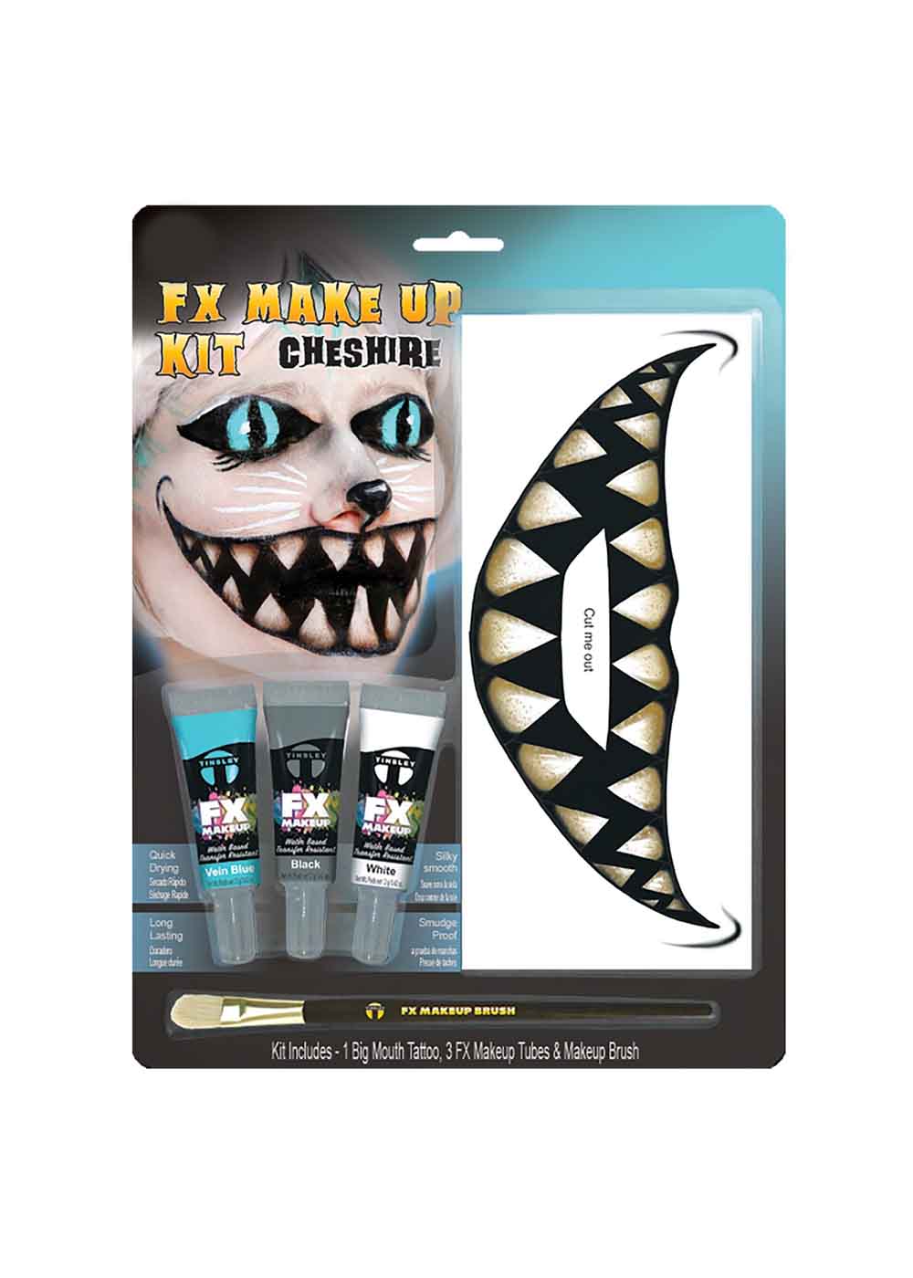 Набор для макияжа Чеширский Кот поможет вам улучшить вашу знаменитую улыбку и создать причудливый образ. Этот набор смывается водой с мылом, поэтому для удаления макияжа не требуется специальных средств. В набор входят три тюбика кремовой косметики синего, черного и белого цветов, которые помогут вам создать яркий образ Чеширского Кота. Кроме того, в комплект входит аппликатор-кисть, который обеспечит точное и аккуратное нанесение макияжа и поможет заполнить детали после нанесения татуировки с широкой улыбкой.