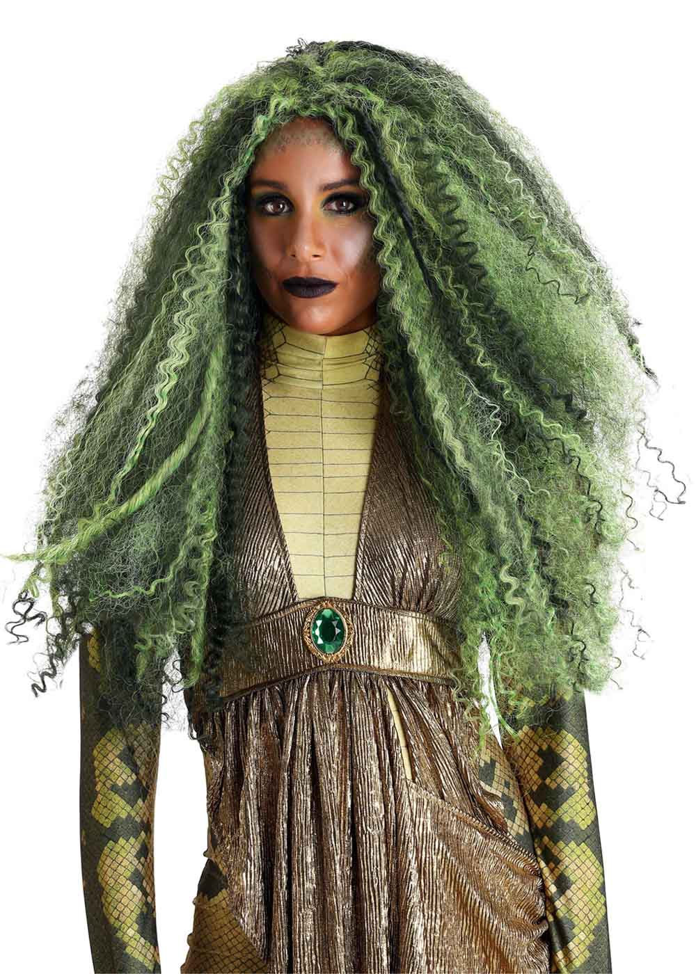 Парик Медуза - воплощение загадочности и великолепия. Зеленые локоны создают впечатляющий образ, придающий неповторимый шарм и магию вашему стилю. Шапочка для парика с эластичным краем обеспечивает плотное прилегание, обеспечивая максимальный комфорт при ношении. Длинные многослойные кудри с оттенками зеленых и черных прядей моментально привлекают внимание, создавая эффектный и завораживающий вид.